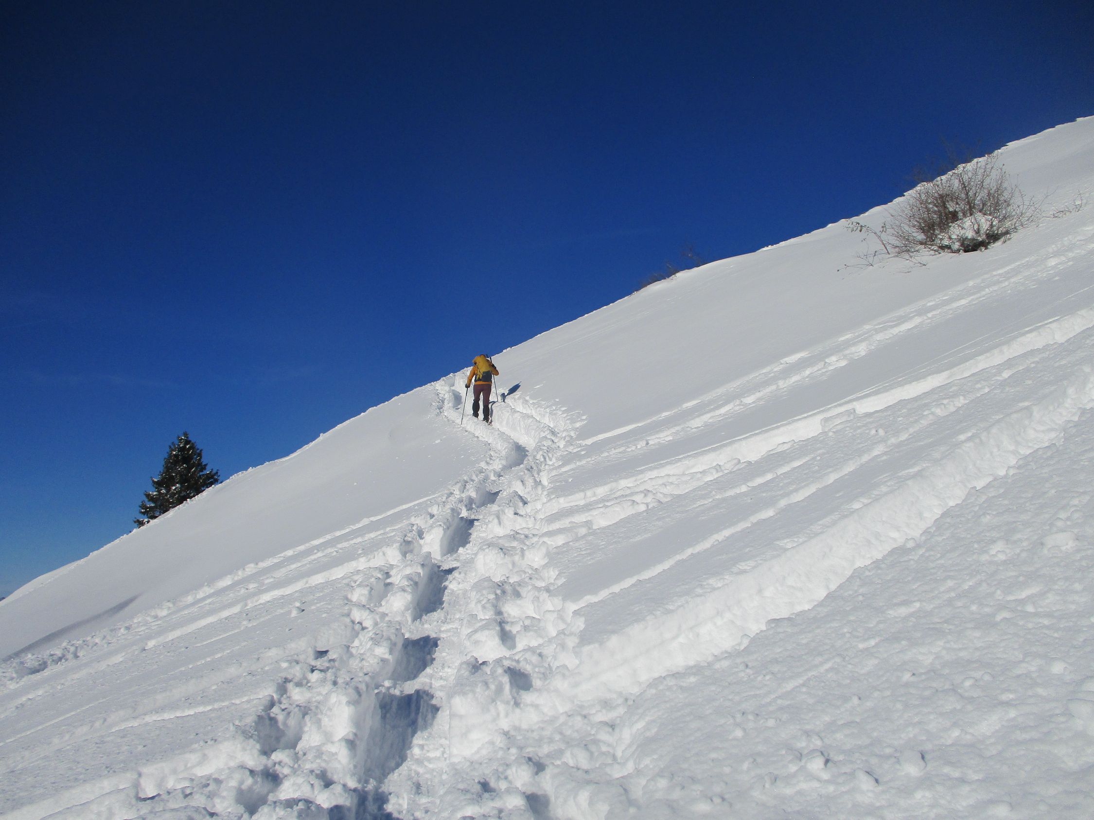 Gute Spur im Aufstieg übers Stockneregg. In diesem Bereich der Rücken teils abgeblasen.