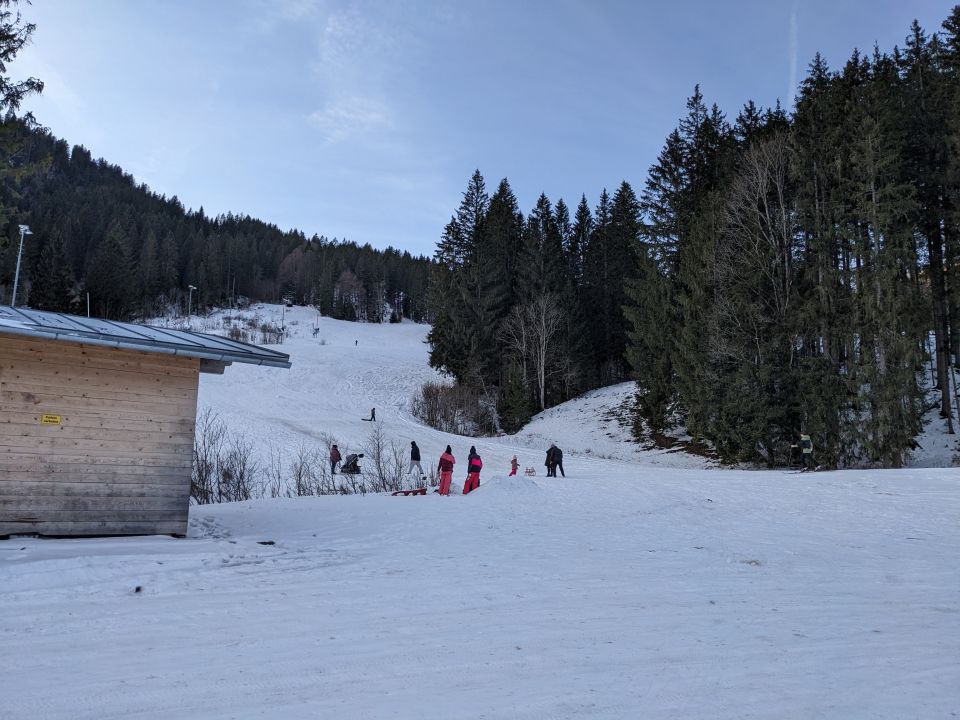 Wir sind die Suttenpiste bis ca. 1200m abgefahren, zwischen den Schneekanonen-Haufen schon arg dünn und schmal, ich kann mir nicht vorstellen dass das Montag Nachmittag noch Sinn macht.