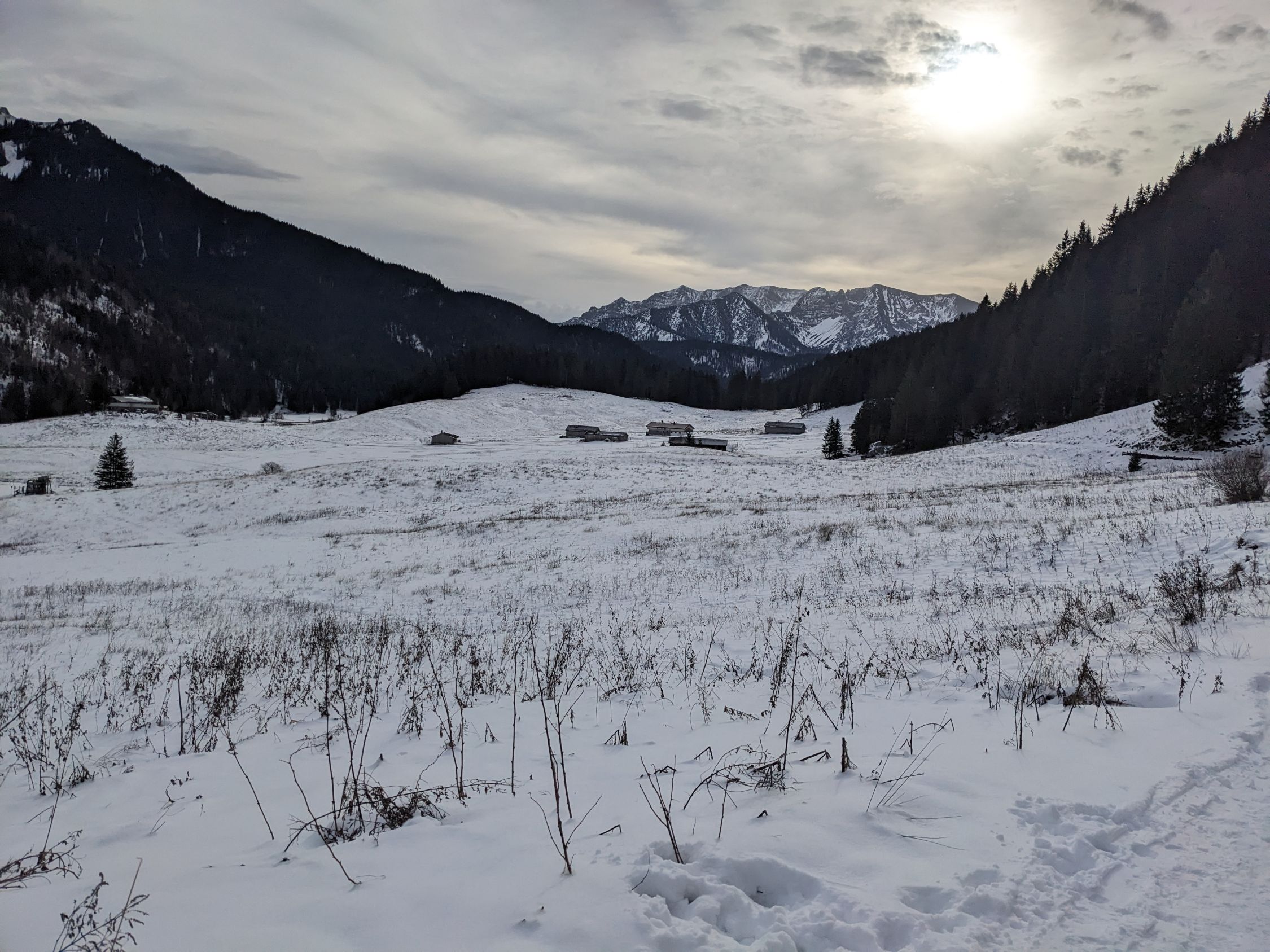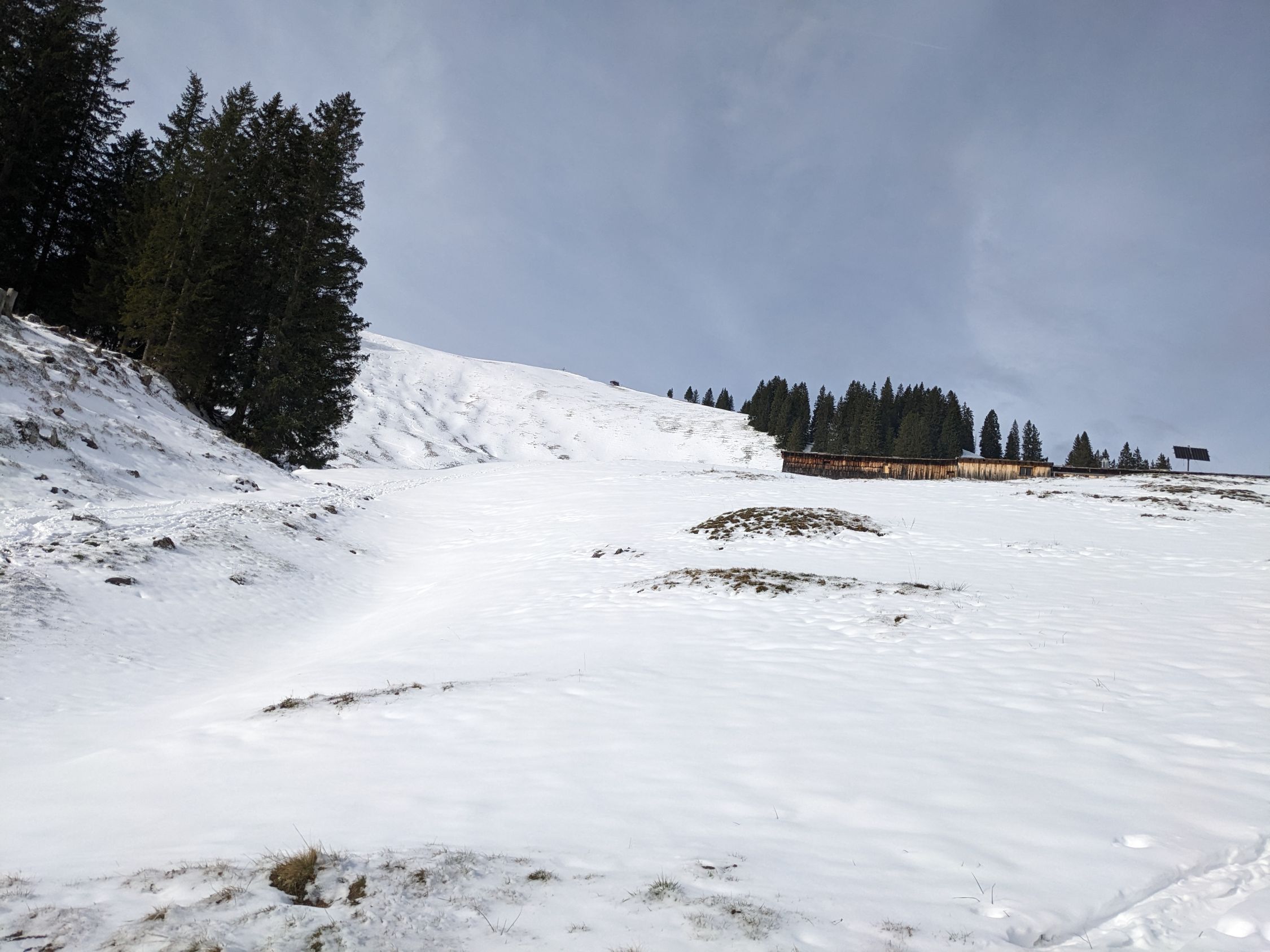 Schnee ab Parkplatz. Im freien Gelände zum Aufstieg gut ausreichend, abfahren geht nur auf den beschneiten Pisten, auf der Nordseite problemlos, heute war der wenig verspurte Schnee nur sehr langsam.