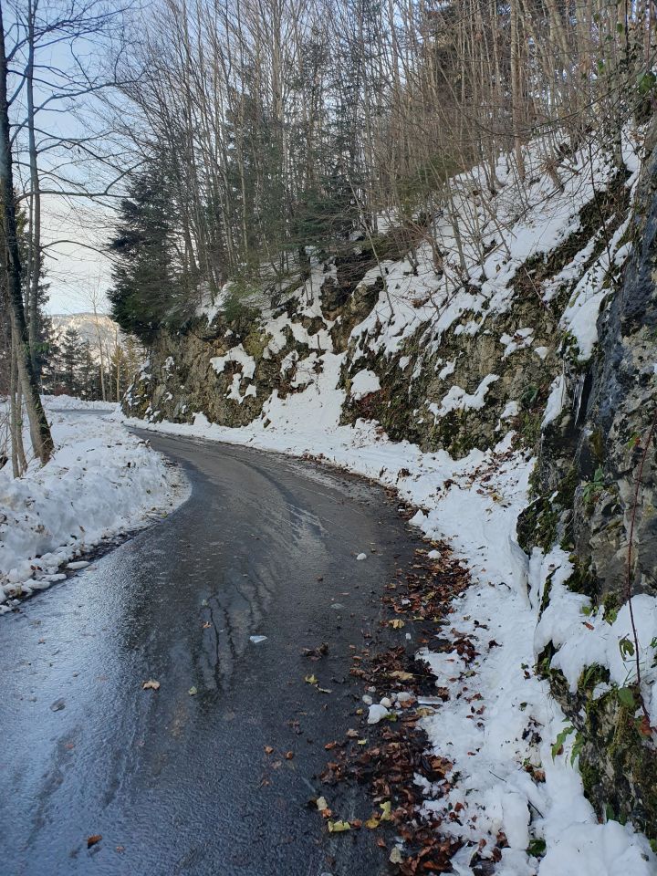 Teils mussten Zäune überstiegen werden. Zu querende Strassen meistens schwarzgeräumt. Ein längeres Stück musste auf einer aperen Strasse gefahren werden. man konnte man Rand mit viel Geschick (teils auf einem Ski) noch "fahren". Aber ebenfalls mühsam.