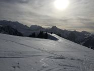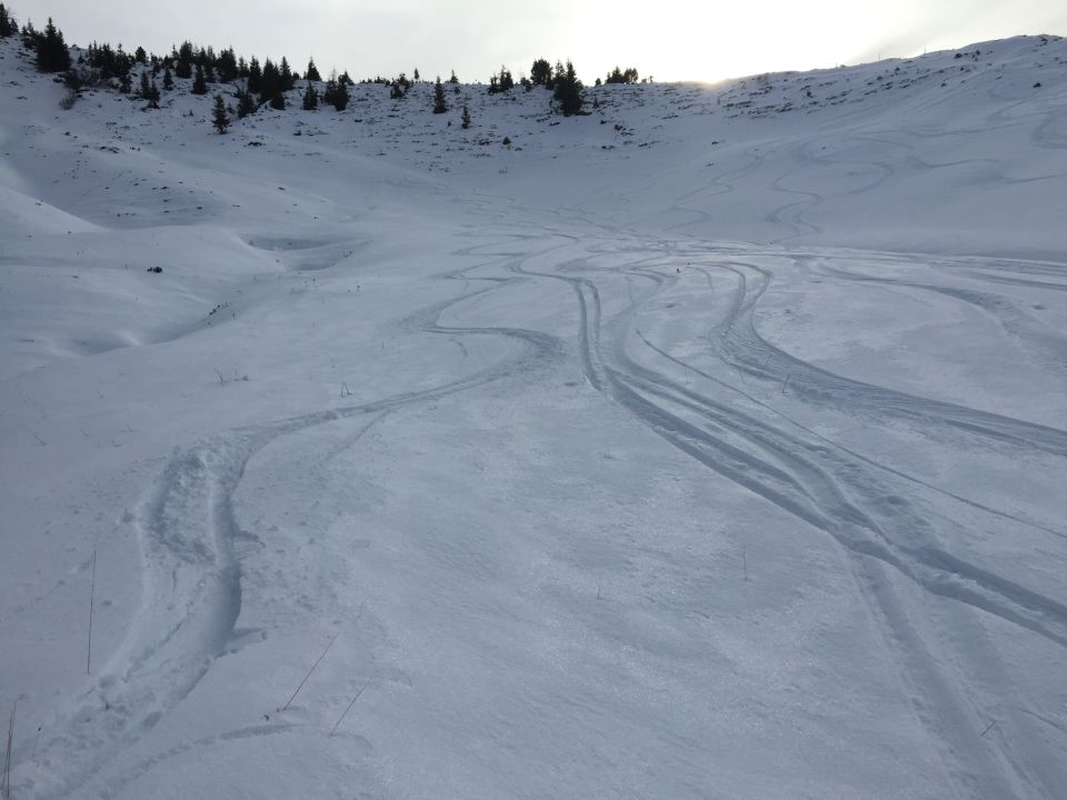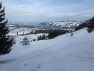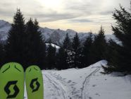 Warmer Start. Schnee bis ins Tal. Abkürzungen gut eingeschneit. . Forstweg gut eingeschneit. Abfahrt der Aufstiegsspur entlang meistens. Mit breiten Ski gut fahrbar. Mittig der Forststrasse lang. Zw 1400 und 900 sehr schön zum fahren. Schneehöhe zw 20 und max 50 cm