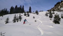 Heute bereits sehr warm, fast bis zu 12 Grad wärmer als am Vortag, dementsprechend waren auch die Verhältnisse. Sehr weicher schwerer Schnee. Wollten zuerst nochmals auf die Gerenspitze aber die Strasse/Weg war schon recht schneearm so entschieden wir uns für den Gerenfalben. Ab Bad Laterns geschlossene Schneedecke. Streng wars, warm wars, schwerer Schnee. Aber das wussten wir, hauptsache ein bischen draussen unterwegs sein war uns wichtig.