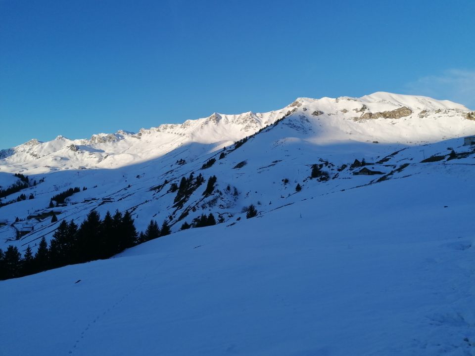 Nach den Niederschlägen neu beurteilen. Die Südhänge oberhalb von Les Crosets sind sehr gut eingeschneit.