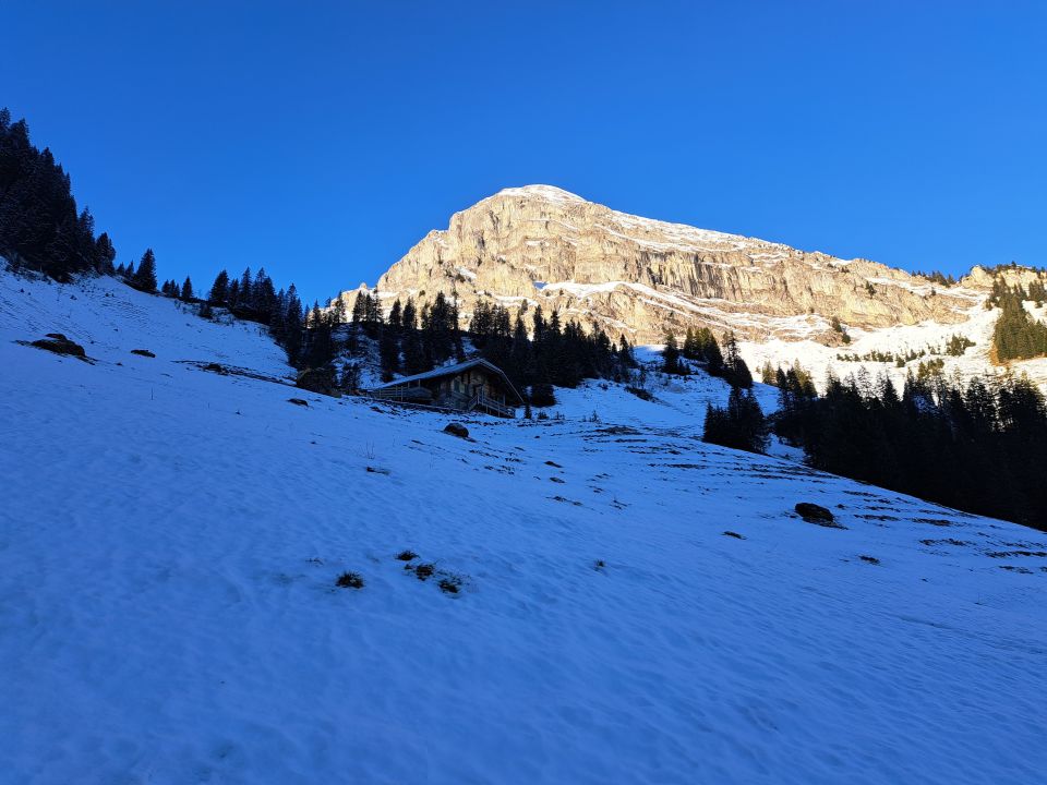 Als wir heute von Oey richtung Diemtigtal fuhren sah es trotz stralend blauem Himmel noch nicht vielversprechend nach Skitour aus.