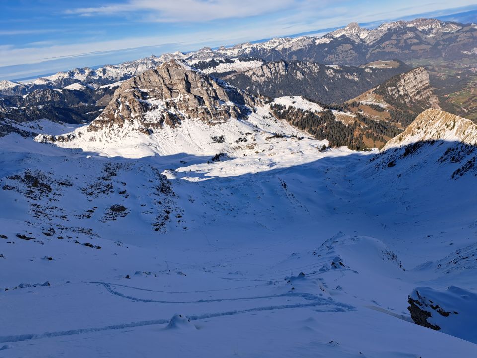 Als dieser sich in der Abfahrt bis Bütschi in den Rinnen und Mulden so super fahren liess haben wir uns entschieden noch ein stück richtung Cheibehorn aufzusteigen.