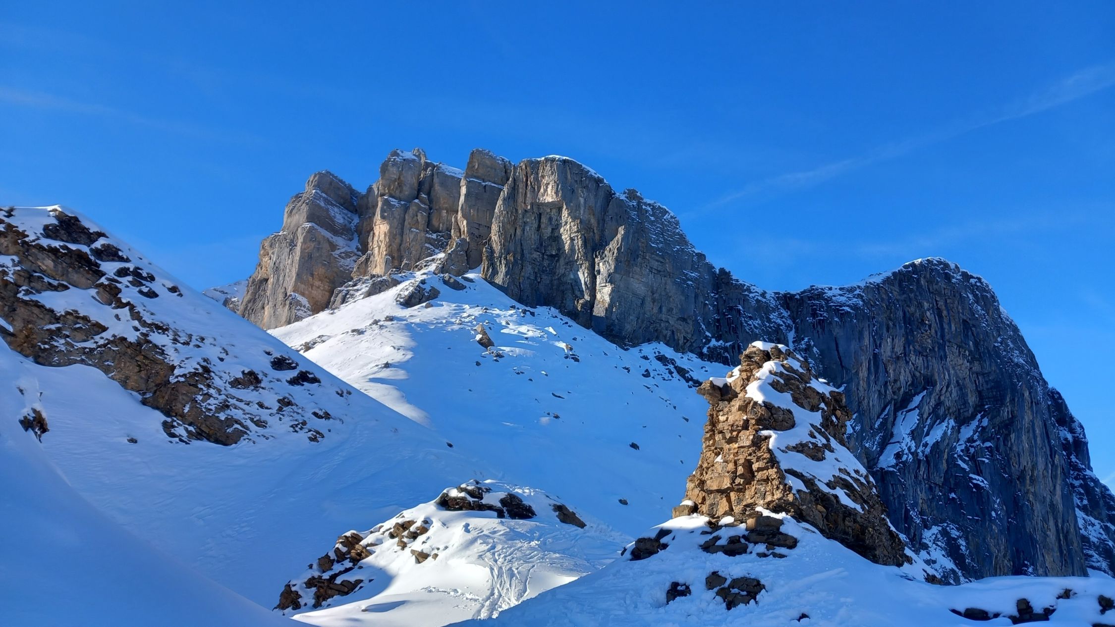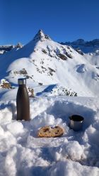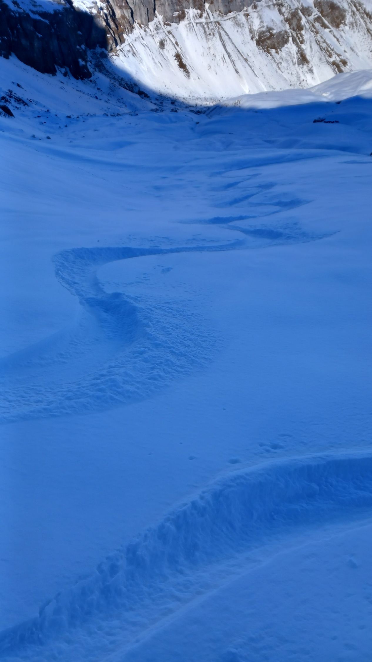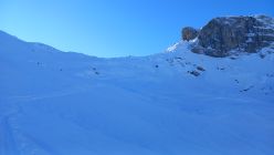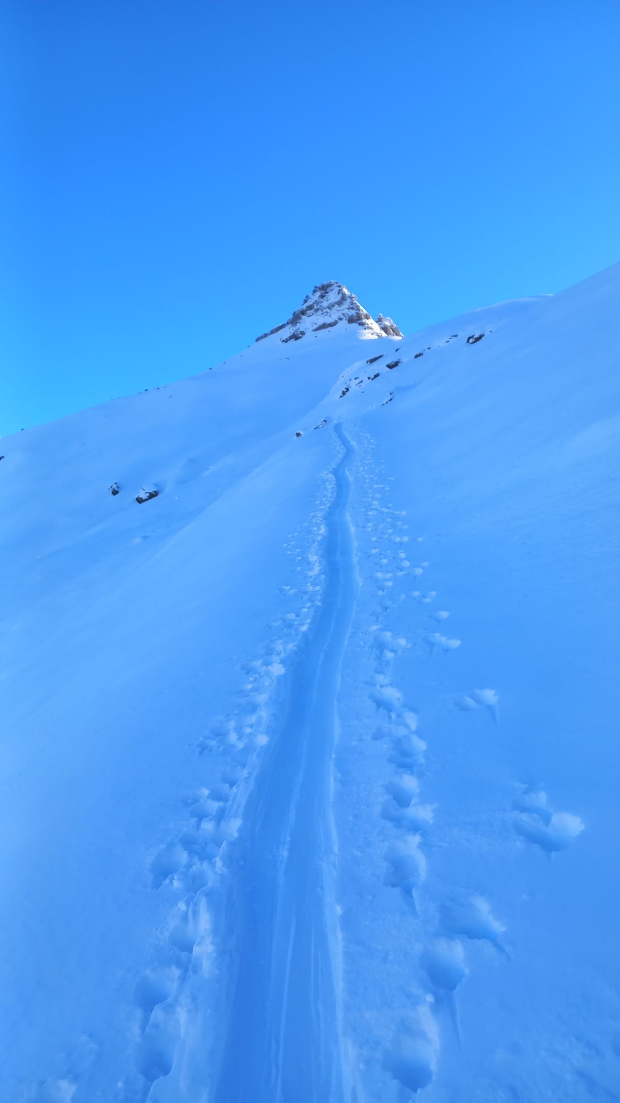 Start der Tour ca. 10Uhr bei -3°C im Sali. Aufstieg durch den Wald möglich mit 1×kurz Ski abziehen. Für die Abfahrt besser die Alpstrasse nehmen. Der Alpweg ist gut gedeckt, feste Unterlage (Regen und Frost) mit einem Schümli drauf. Unterhalb Gipfelhang etwas steinig, geht aber auch in der Abfahrt gut. Gipfelhang sehr schön. Gut gesetzte Unterlage, obenauf ca.10cm Pow. Sehr geil zu fahren. Manchmal etwas windbearbeitet. Ganze Route schattig.