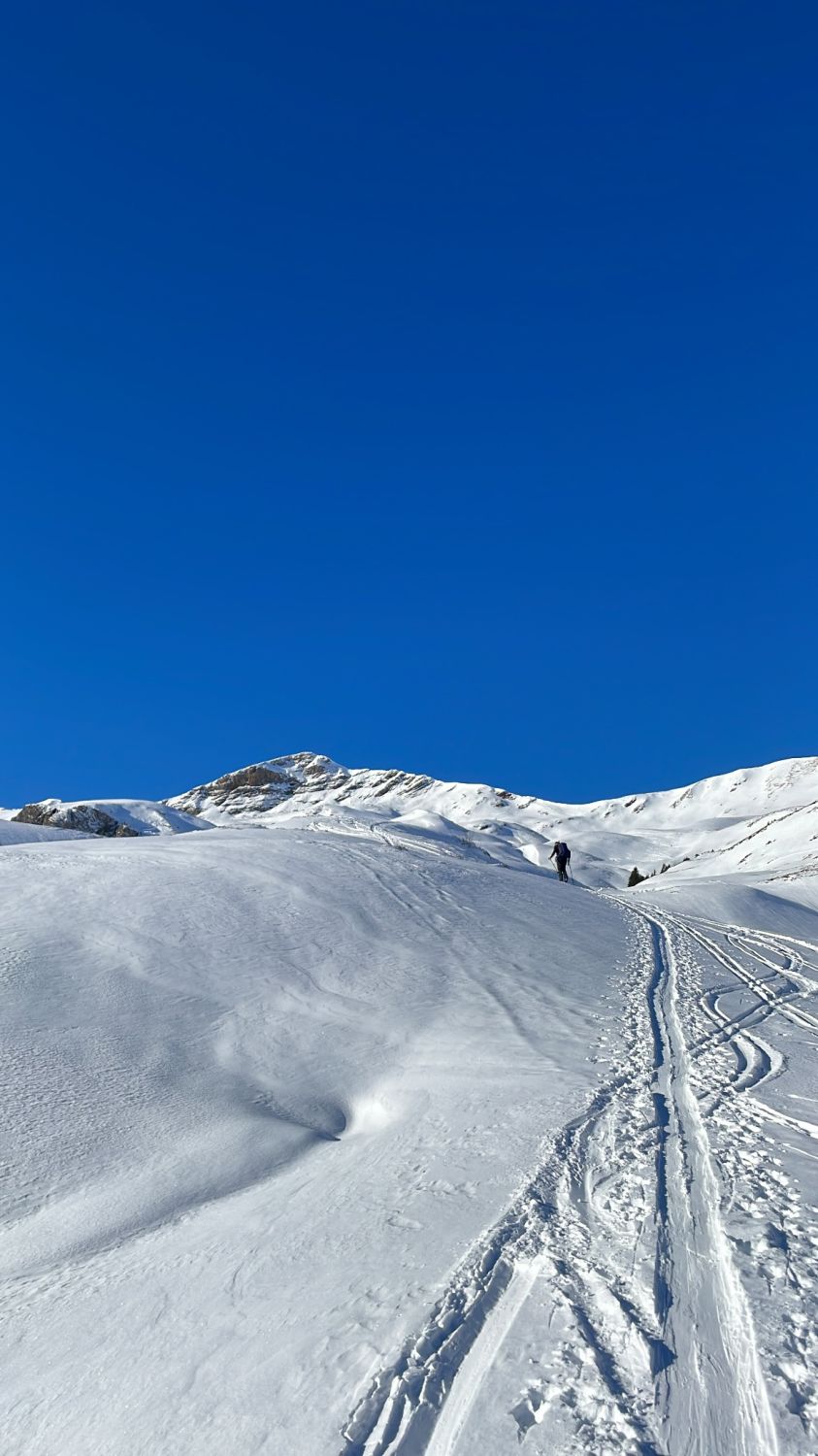 Bequemer Aufstieg mit guter Abfahrt! Viel Pulver aber manche Stellen waren Bruchhart. Die Aufstiegsflanke war mit Wind geblasen