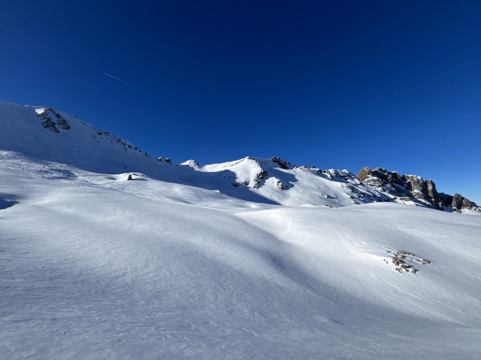 Start um 9:00, ca. 15 Tourengeher unterwegs, tiptop Spur, im Wiessmeilensattel als SB auf Steigeisen gewechselt, im Collie zum Gipfel Ketten alle Frei, oben viele Griffe Frei zum Gipfel, bin dann weiter zum Wiessmeilen Magerein. Abfahrt im schönen Powder , kein Feindkontakt, überaschend gut