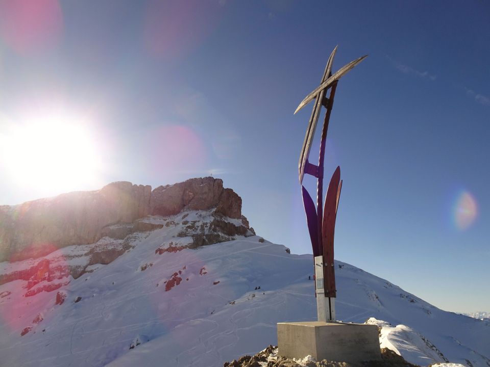 Wetter bestens mit guter Fernsicht, beim Start recht frostig, nach oben hin dann wärmer. Im Gipfelbereich kalter Wind. Einige Leute unterwegs, hat sich aber gut verteilt. Hoher Ifen wurde auch begangen.