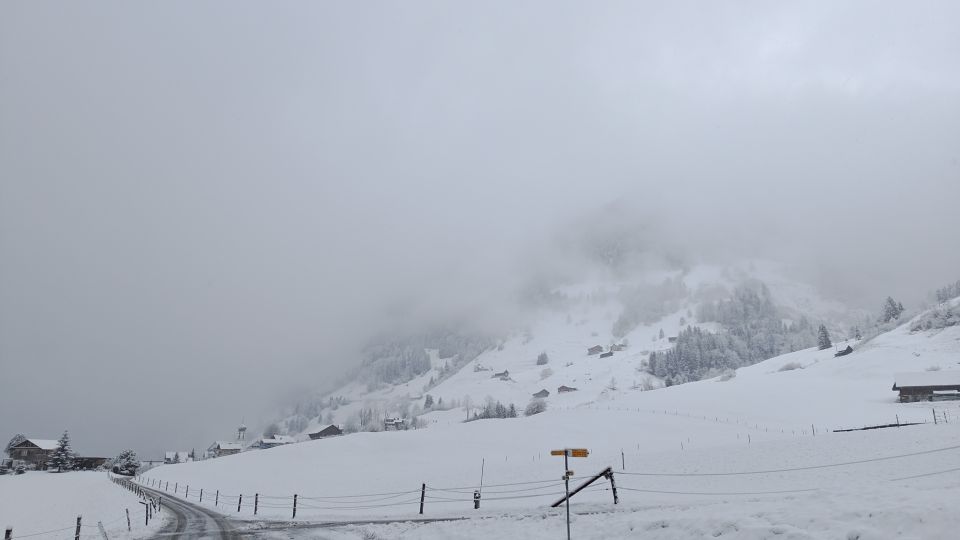 In Oberrickenbach liegt ein Schäumchen, was uns dazu verleiten lies nur eine einfache Fahrt zu lösen. Auf der Bannalp gabs dann bereits gute 20 cm Neuschnee auf chratziger/knuspriger Unterlage vom letzten Regen. Die diffuse Sicht schwankte zwischen 50 und mehreren hundert Meter. Bis zum Gaden beim Gruenboden schafften wirs trotzdem ohne Probleme. Der Hang hoch zur Schonegg war uns dann aber zu Heikel, die schlechte Sicht verunmöglichte es den Hang richtig einzuschätzen. Abfahrt dann Richtung Büelenboden, Räckholteren und rüber zum Nätschboden. Ab und an etwas Feindkontakt.
