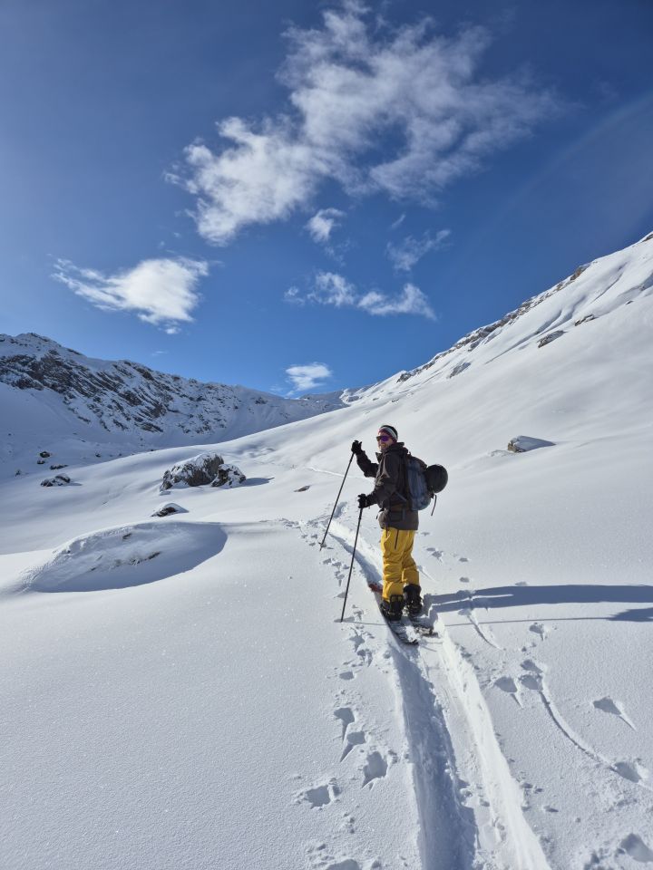 Start bei der Engstligenbahn bei strahlendem Sonnenschein, praktisch Windstill. Bereits gut gespurt. 10-20cm Neuschnee auf meist tragender Unterlage. Steinkotakt vermeidbar sobald man in bereich der Rinnnen und Mulden fährt, aber auch sonst erstaunlich gute Verhältnisse.