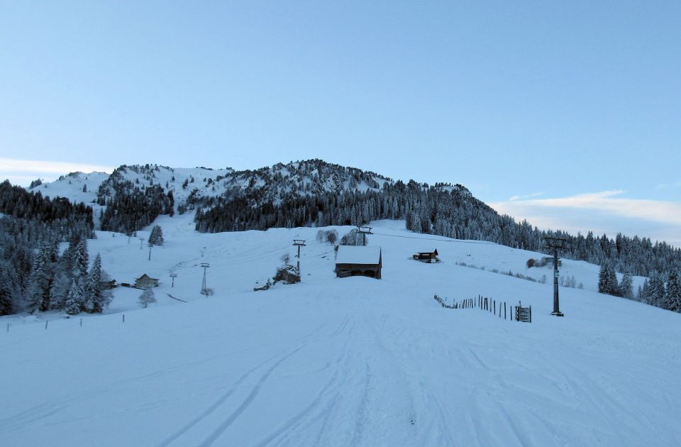 Abfahrt: Ca. 15 cm Pulverschnee auf gut tragender Unterlage. Mit etwas Suchen findet man noch unverspurte Flächen. Keine Steine erwischt. Die schönsten Hänge mit leichtem Pulverschnee fanden wir unterhalb der Buoffenalp (Restaurant eröffnet morgen die Wintersaison).