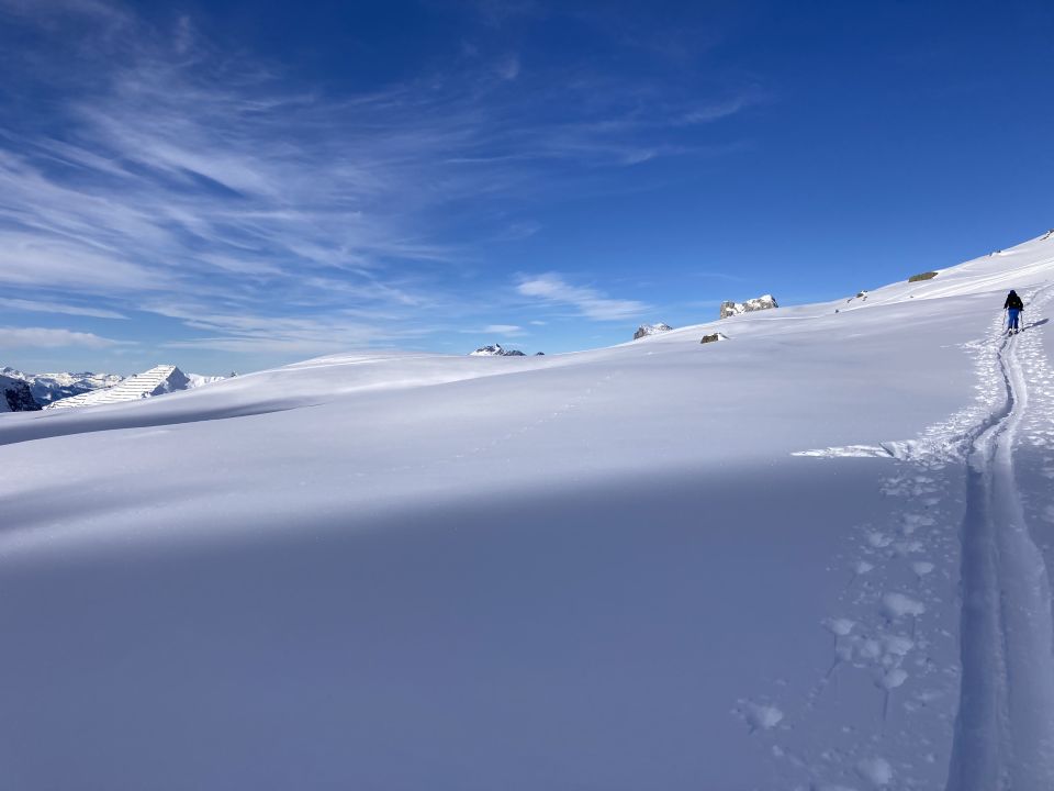 Kalt. Schöner Puver aber ohne Unterlage. Steinkontakt unvermeidbar. Steilhänge ein Genuss!