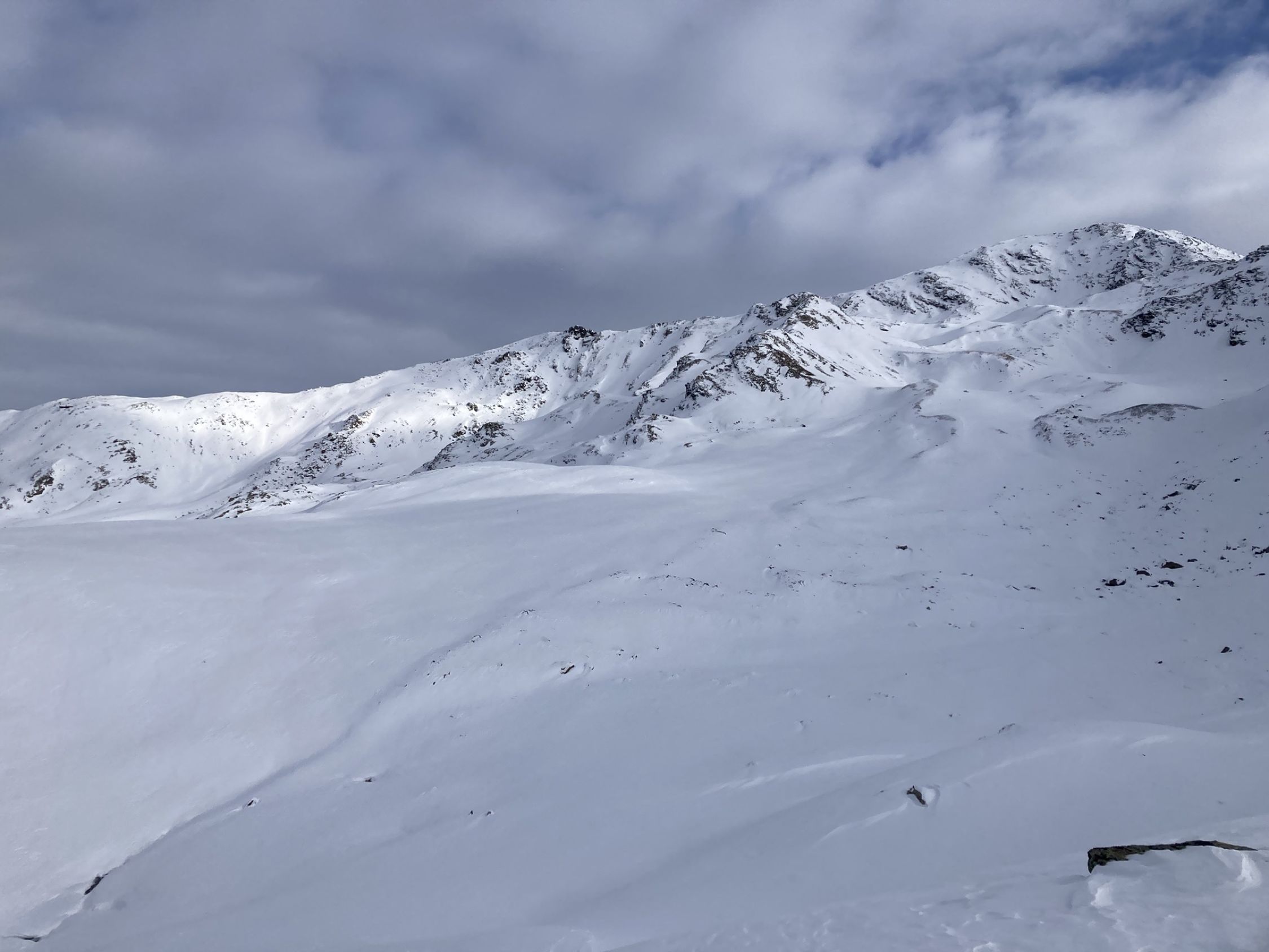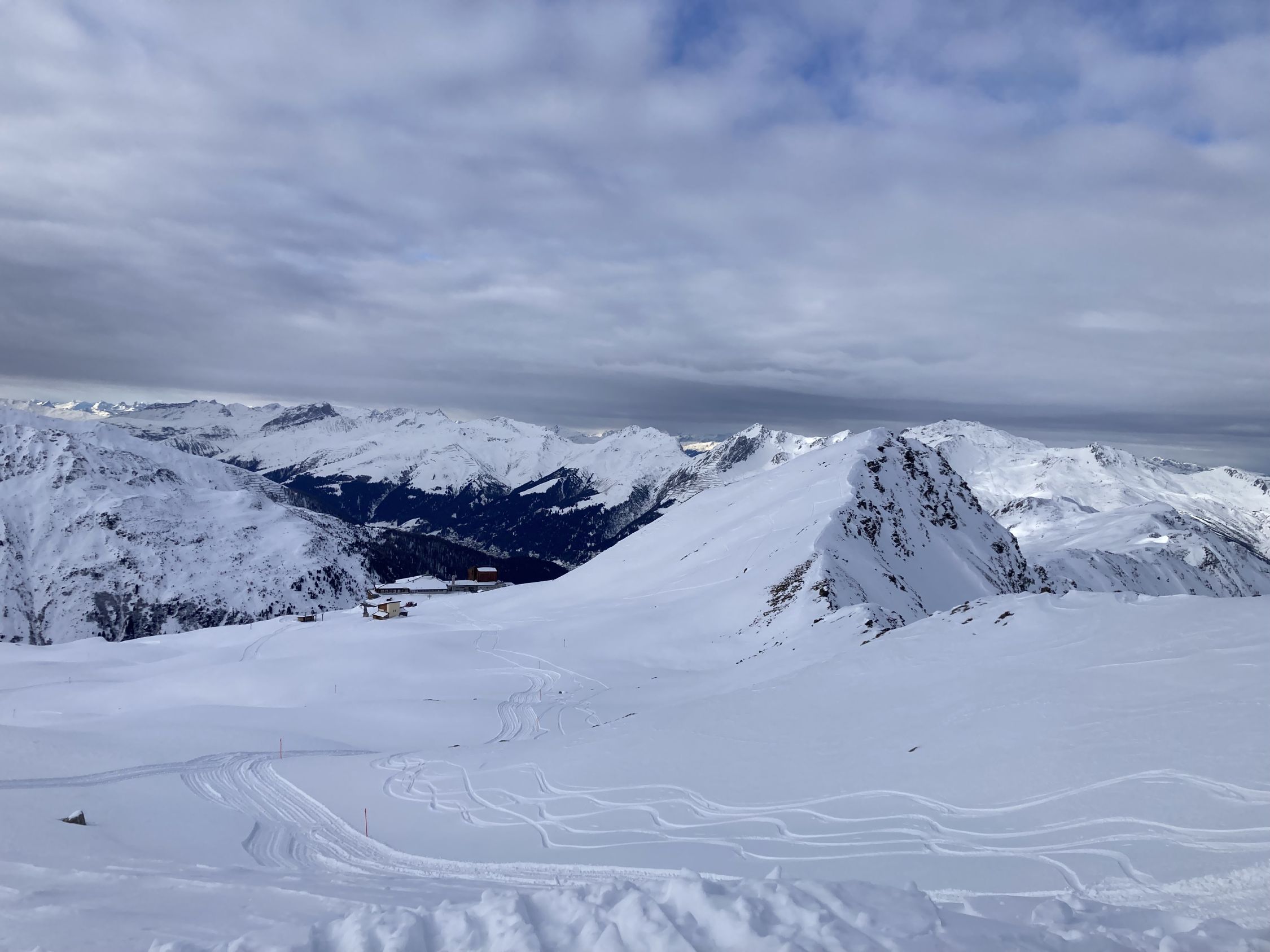 Info: Flüelapass alles ab Tschuggen Richtung Engadin hat zu wenig Schnee, es schauen dort noch massiv viele Steine raus. Nur 4 Spuren ab Wägerhütte vermutlich aufs Jörihorn oder Flüelaweisshorn gesehen. Hier braucht es noch mindestens 0,5m Schnee, um halbwegs zu Touren (siehe “Parkplatzbild aufgenommen zwischen unterhalb des Passes und Chant Sura Blickrichtung Engadin,)