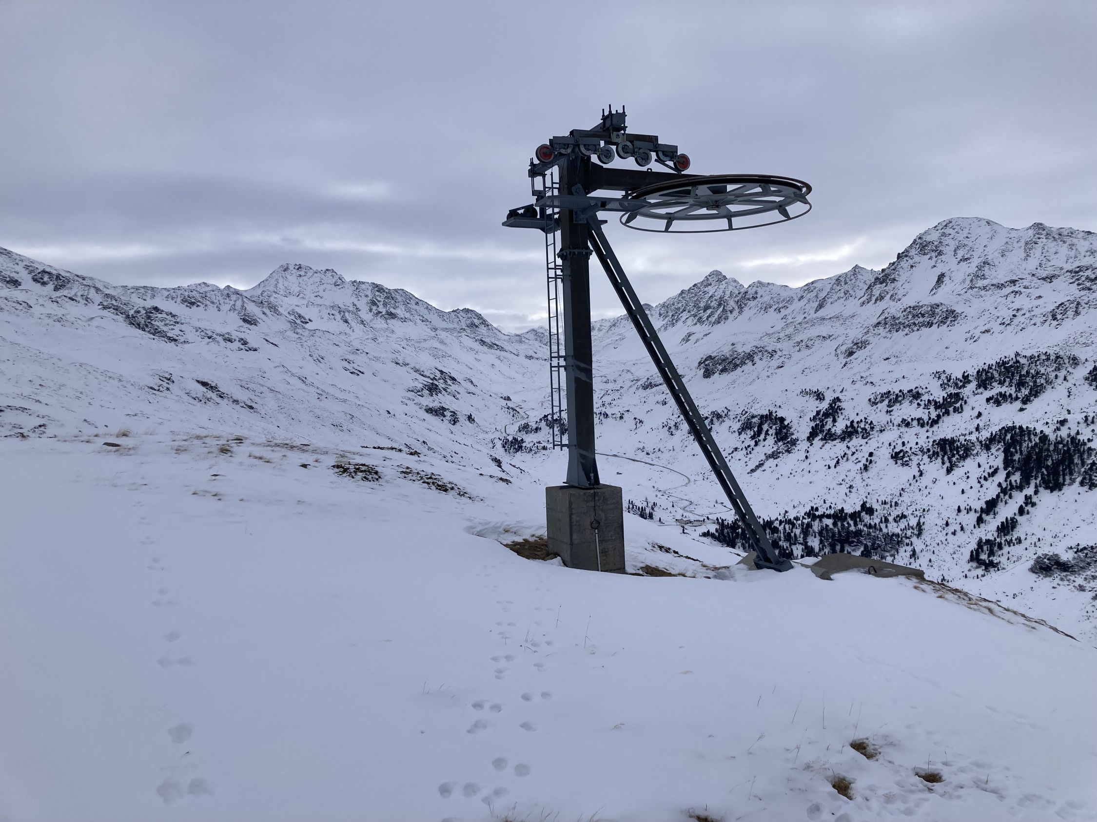 Ich fellte hoch bis zur verlotterten Bergstation des Schlepplifts wenige Höhenmeter oberhalb der Pischabahnbergstation. Hier Finale Abfahrt.