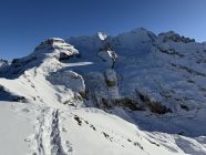 Die Strasse bis Griesalp weist aktuell nur wenige apere Stellen auf, in der Abfahrt nur eine zwingende Gehstrecke von 20 m. Ab Griesalp wenig Pulver ohne Unterlage, über ca. 1800 müm genug für entspannte Schwünge. Abfahrt via Wärmetflue unverspurt und grandios. Ab Untere Bundalp auf dem Fahrweg problemlos bis Tschingel. Alle Erwartungen wurden übertroffen. :-)