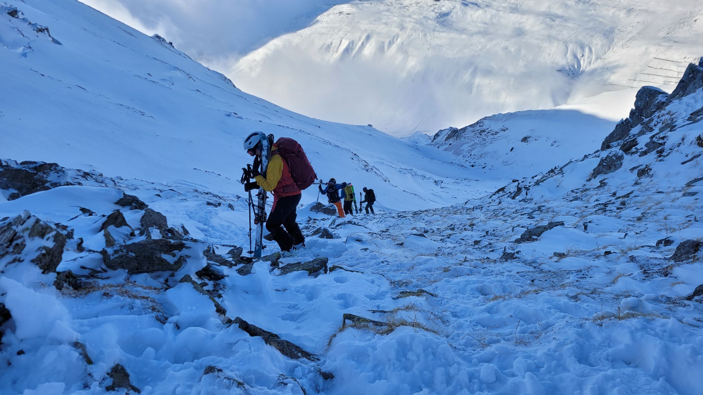 Das "gut" bezieht sich auf die Machbarkeit bei den aktuellen Schneebedingungen. Im Aufstieg über den Lai da Tuma zur Martschallücke hat es ordentlich Schnee und überwiegend nicht windbearbeiteten Pulver. Auf der Nordwestabfahrt wird es dann schwieriger. Wenn man in den Rinnen bleibt, ist es ein super Abfahrtsgenuss, dazwischen gab es immer mal wieder Steinkontakt. Die ersten 20 m vom Pass mussten wir absteigen und die ersten Fahrmeter ist es fast nicht möglich, ohne den ein oder anderen Feindkontakt. Nach unten hin wurde es aber deutlich besser. Die Abfahrt über Riederen/ Graben nach Andermatt war aber noch nicht möglich.