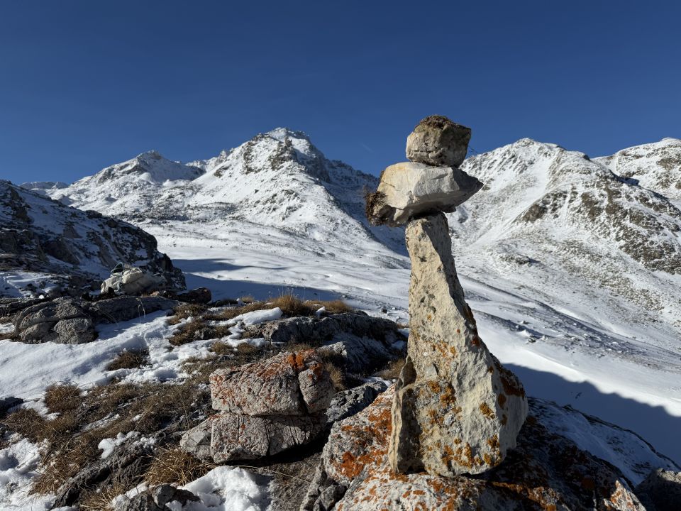 Winterwanderung auf die markante felsige Kuppe im Nordrücken des Piz Padella, T4. Start San Peter Samedan 8.15 Uhr, minus 3 Grad, bewölkt, windstill. Im Schnee auf einer Spur bis Alp Munt, nun auf Schneeschuhspur bis Margunin und weiter teilweise viel Schnee bis Gipfel. War mit Hochtourenschuhe und Grödel unterwegs. Abstieg wie Aufstieg, auf dem Gipfel angenehm warm und ab Alp Munt Sonne und blauer Himmel. Bei diesen Verhältnisse T4.
