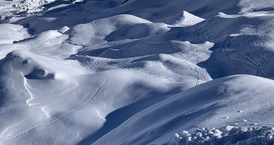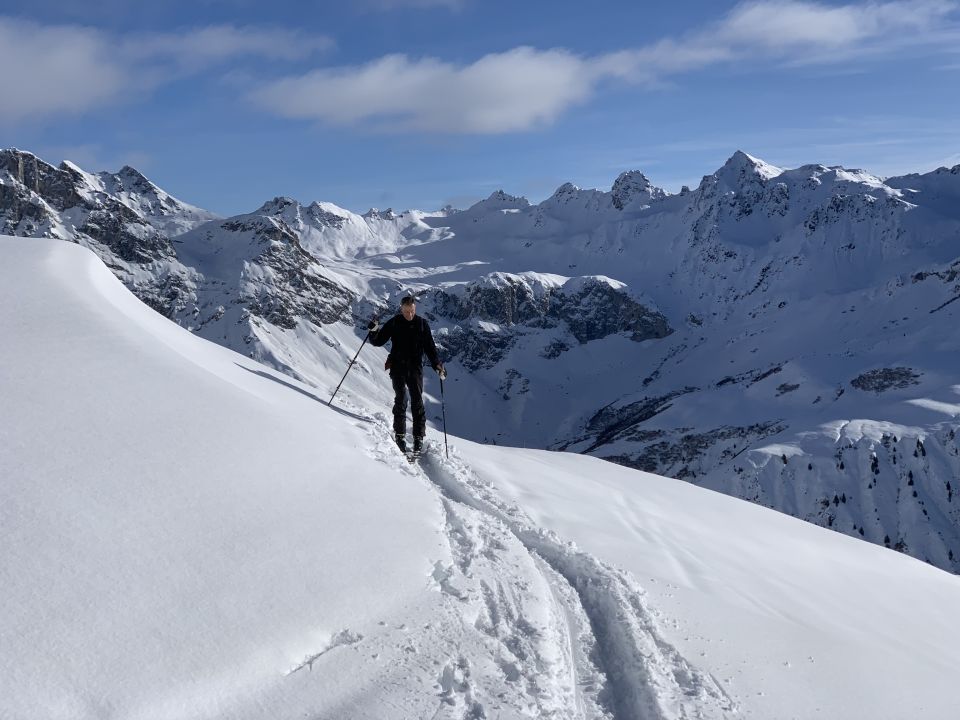 Zum perfekten Wetter kam der Pulverschnee hinzu - keine Unmengen, aber doch mit das Beste, was mir in diesem Jahr bislang untergekommen ist. Im Aufstieg etwas lästige Stollen Bildung, ansonsten alles ein Vergnügen. Gleiches gilt für den Schafberg.