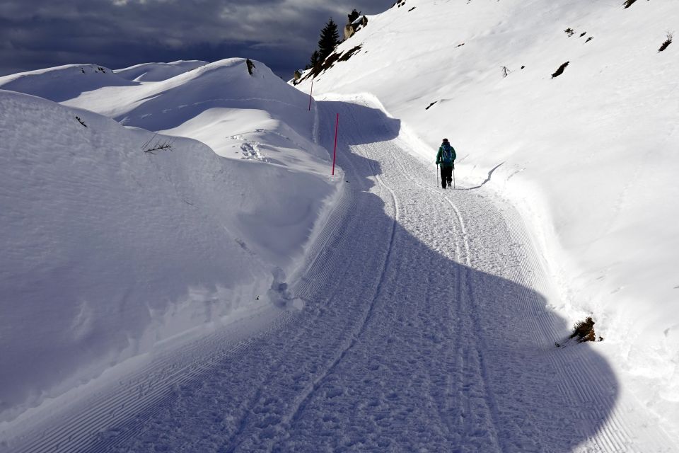 Der Winterwanderweg von der Fiescheralp zur Riederqlp ist perfekt präpariertDie im Frühling gefürchteten Rutschstellen vom Wurzenbord zur Bettmeralp hinunter sind sehr gut begehbar. Stöcke und Winterschuhe mit gutem Profil erleichtern den Abstieg zur Bettmeralp.