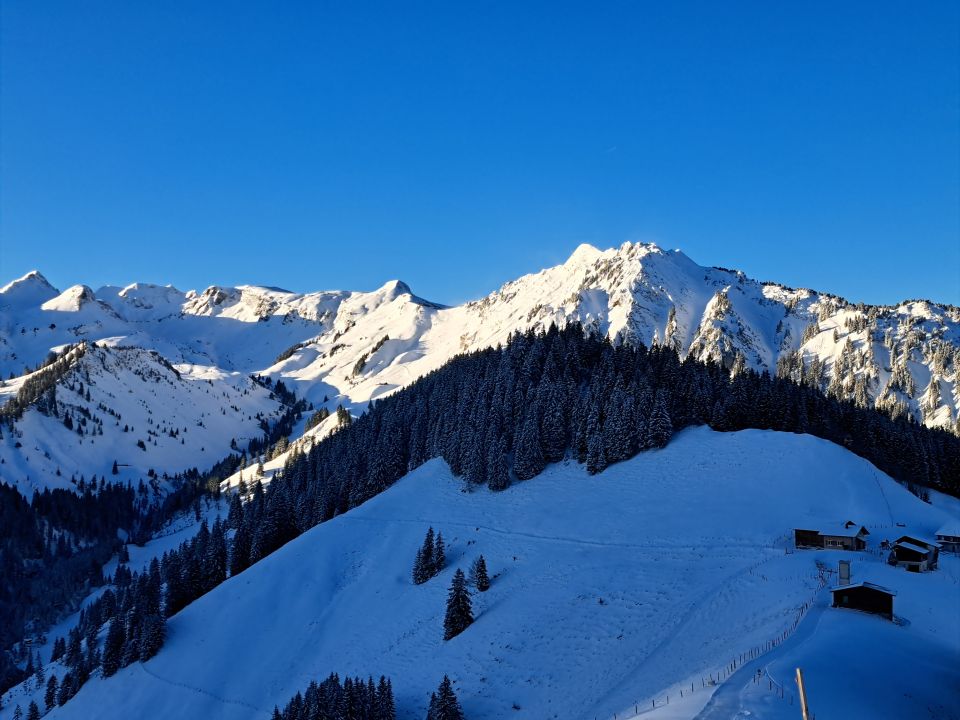 Wir sind Horn-Wirzweligrat-Vordergummen-Gummenalp aufgestiegen. Landschaftlich sehr schön, aber knappe Schneeauflage im Wald.