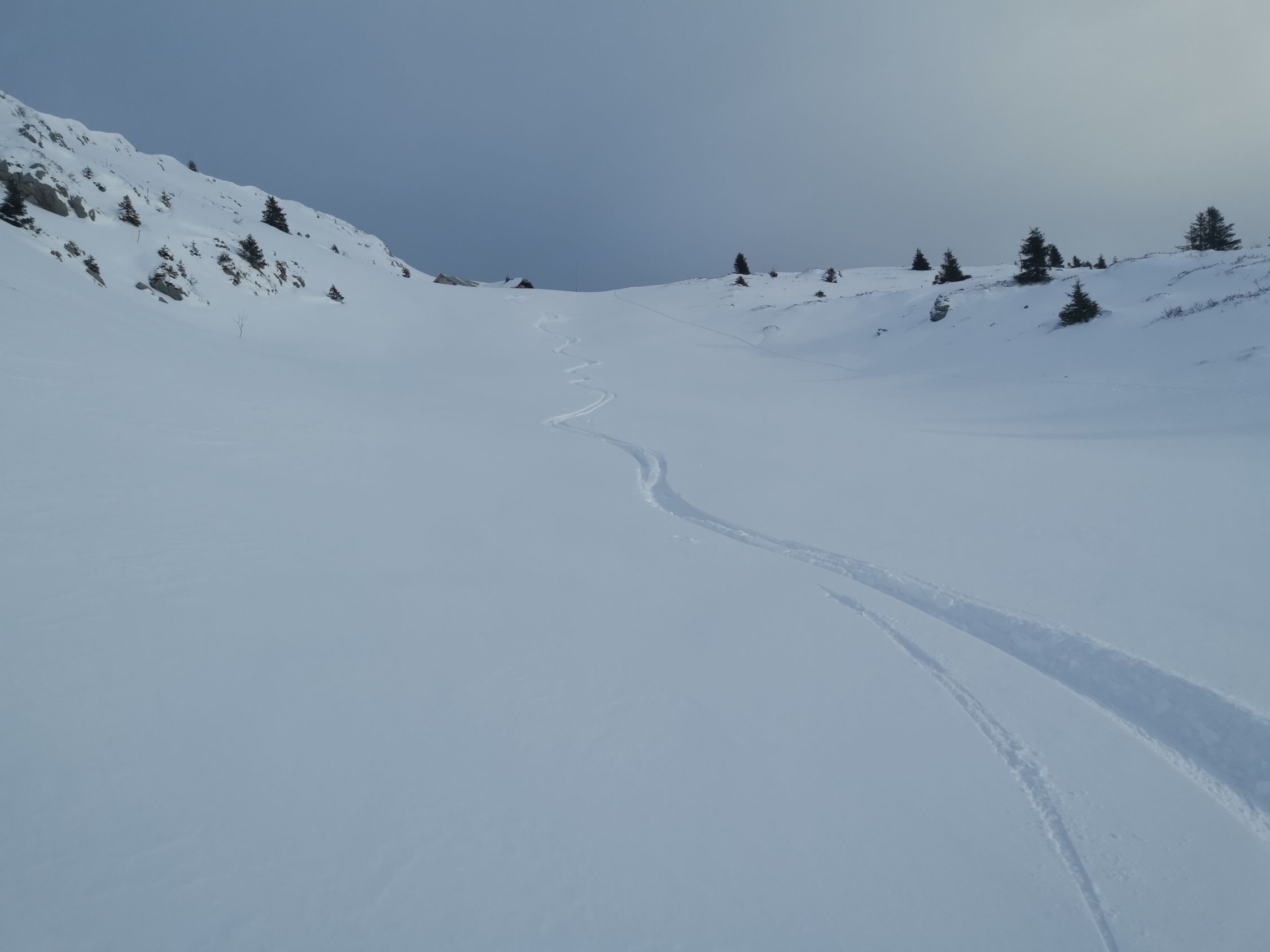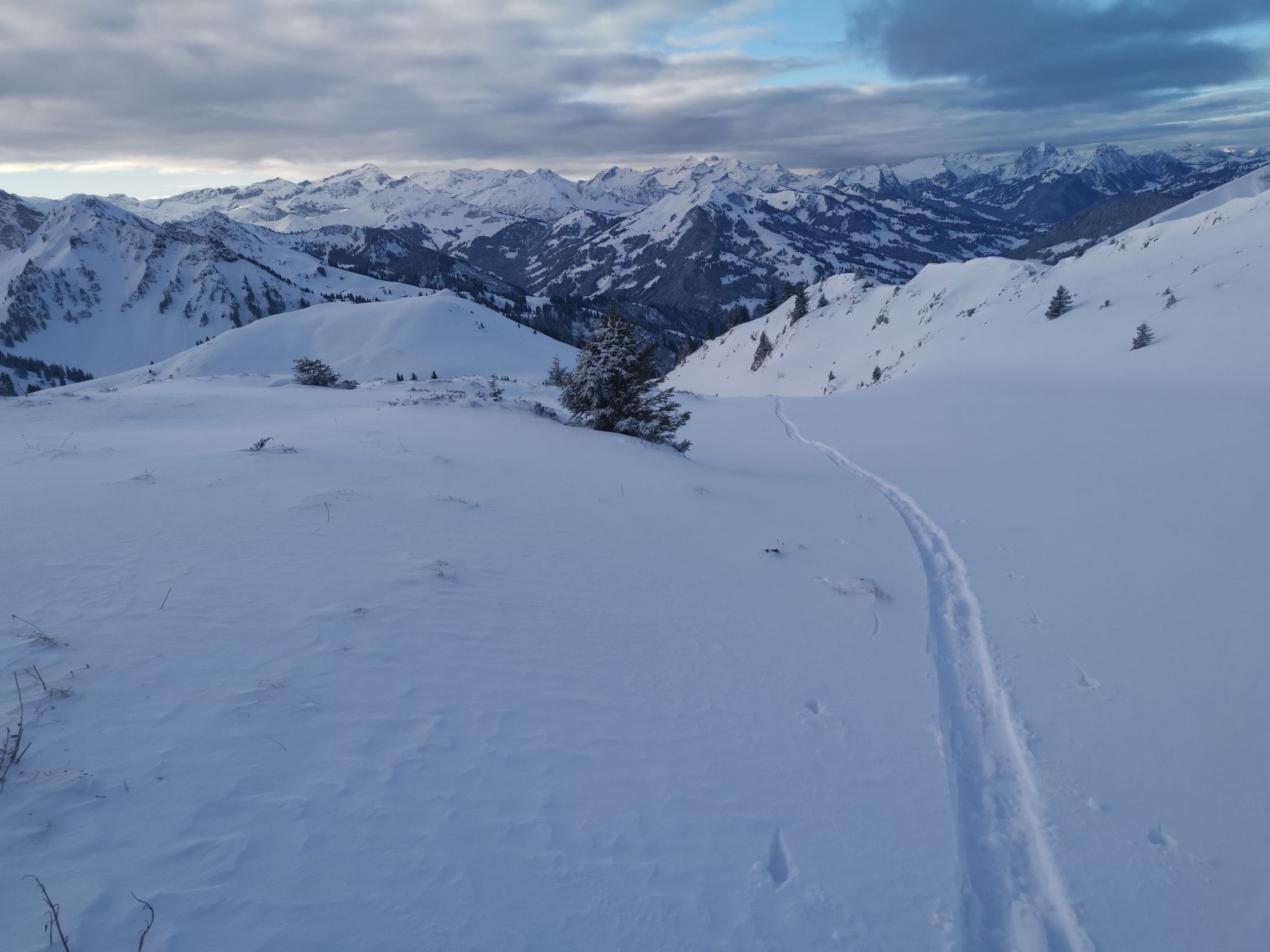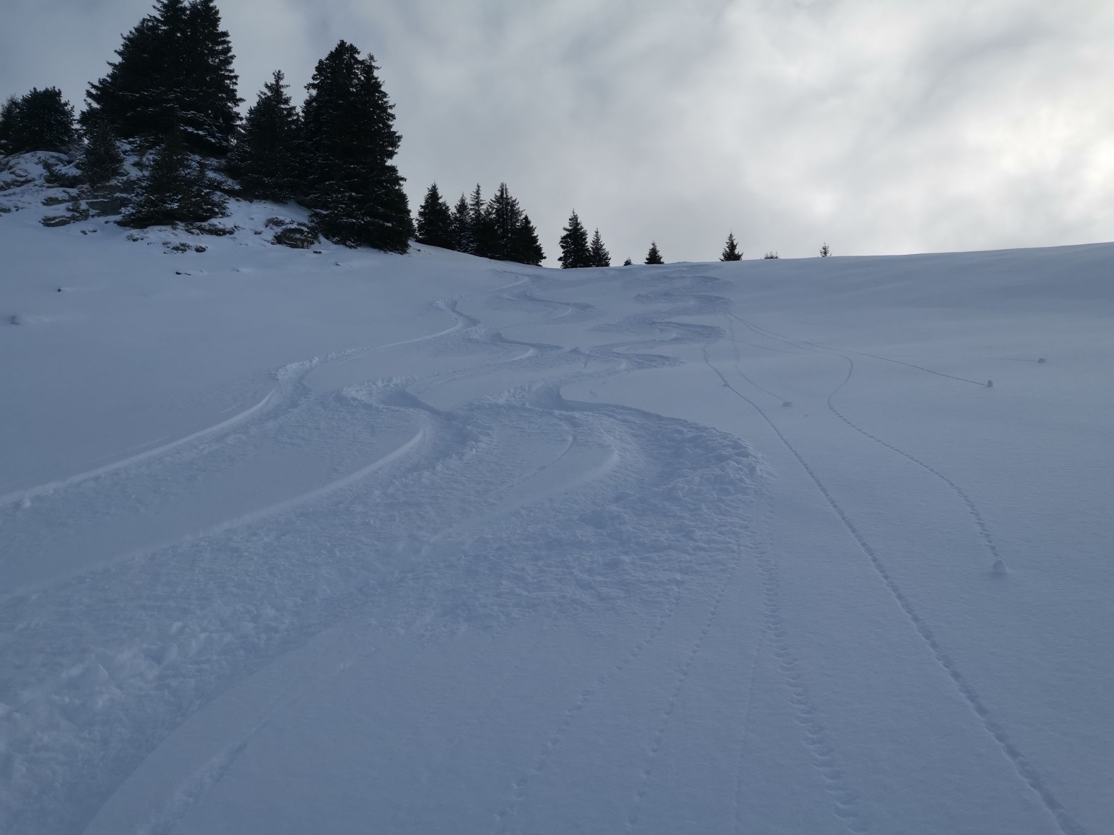 Von Brätliplatz bis zum Gipfel dann tolle 15-20cm Pulver auf tragender Unterlage. Wunderschön zum Fahren!