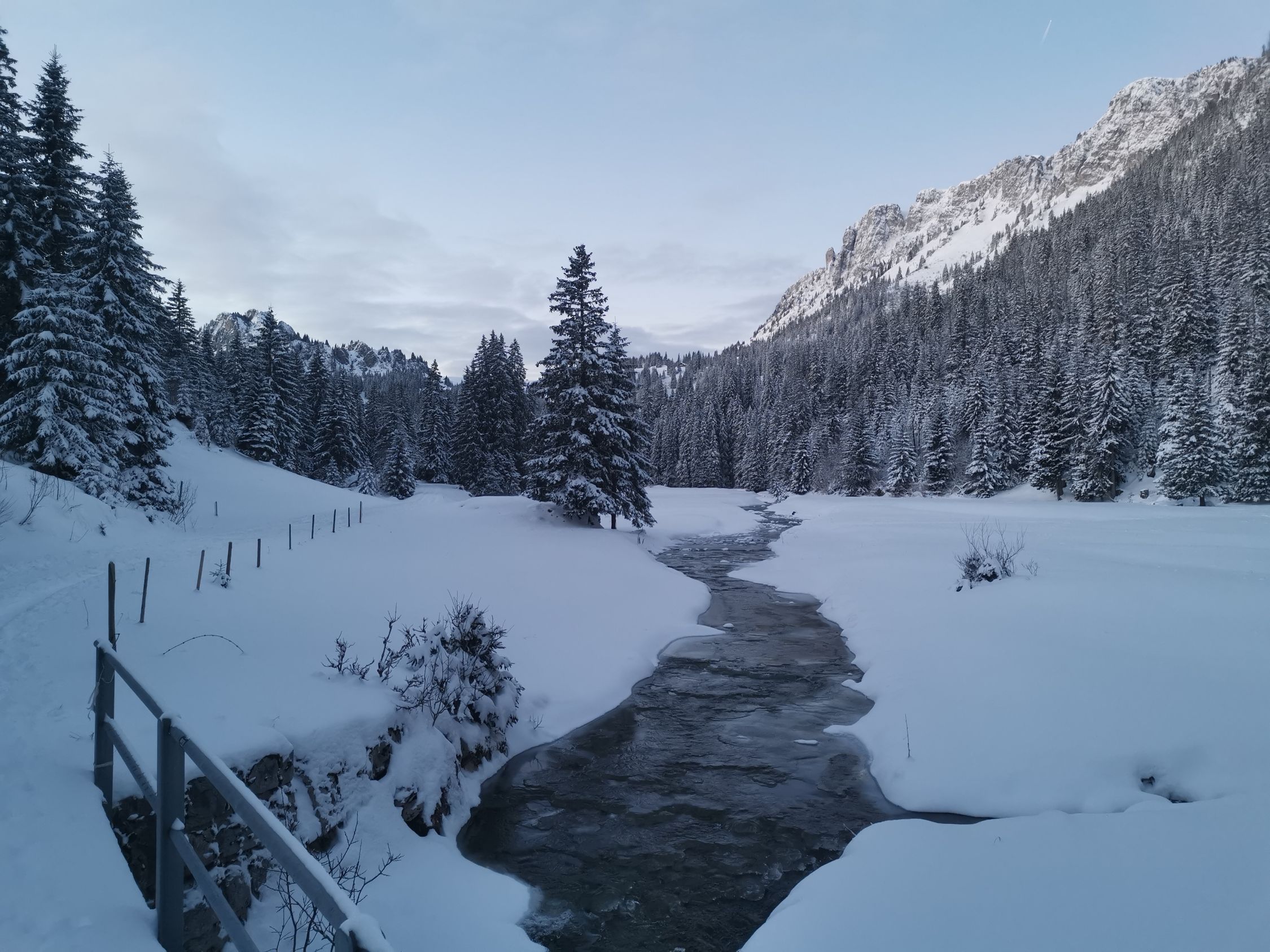 Start um 7:45 bei kühlen - 9 Grad. Strasse bis Brätliplatz gut mit Schnee bedeckt, daneben lassen sich auch bei vorsichtiger Fahrweise Bodenkontakte nicht vermeiden.