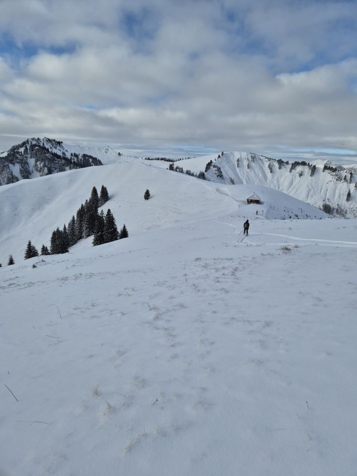 Im ganzen Diemtigtal wohl zu recht noch nicht sehr viel los skitourenmässig (auch sonst vermutlich nicht ;)). Wiriehorn sah im Wiriegrabe okay aus, NW-Rücken wie immer eher abgeblasen. Meniggrat sah oberhalb der Waldpassage auf 1800m toll aus, darunter (und das ist bekanntlich fast die ganze Tour ;)) auch knappe Schneeauflage.