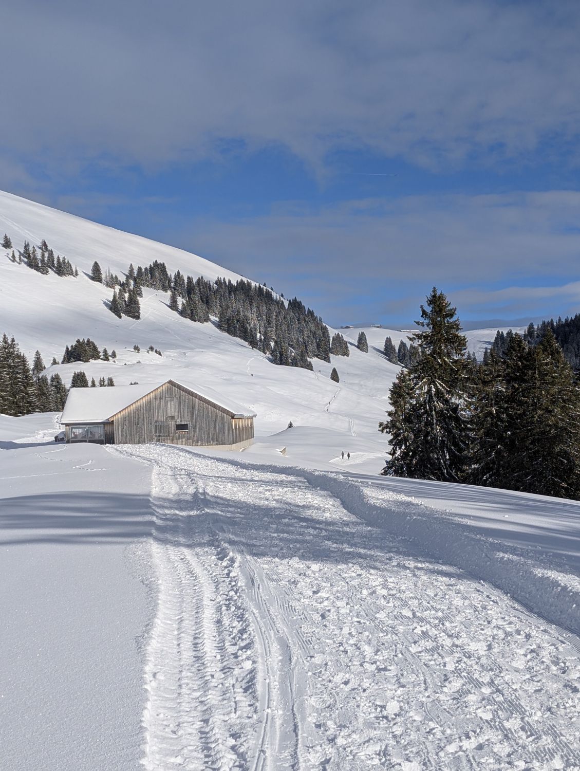 Pulverschnee von unten bis oben. Aktuell genügend, wenn auch nicht übermässig viel. Dh. man muss halt in den Mulden schwingen und nicht auf den Buckeln...