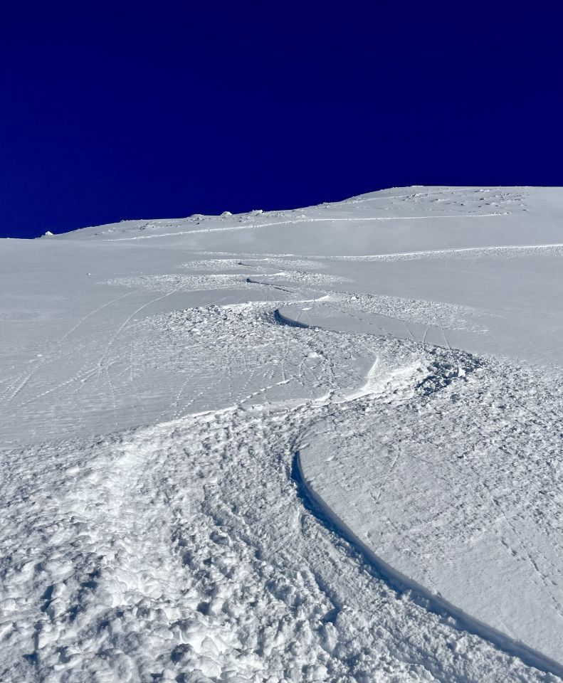 Um 8.00 Uhr im Fildrich bei -5 Grad gestartet. Schon vom Parkplatz weg hat es 40-50 cm Neuschnee. Wir sind den Wanderweg durch den Wald hochgestiegen. Unterwegs auf dem Waldweg liegt noch eine kleine umgefallene Tanne, die überstiegen werden muss. Oberhalb vom Wald hat es über einen Meter frischer Neuschnee. Wir konnten den Skiestock ganz im Schnee versenken. Es war harte Spurarbeit bis zu der Alphütte. Danke Emanuel für das Spuren. Weil der Gipfelhang bedeutend weniger Schnee hatte, sind wir weitergegangen, sonst hätten wir umgekehrt. Es hat 10-20 cm Neuschnee auf einer harten Unterlage. Somit war Rosiko bei der prekären Lawinensituation gering. Auf unserer Seite gab es keine Wumgeräusche. Aber auf der anderen Talseite Richtung Landvogte und Gsür gab es immer wieder starke Wumgeräusche. Die Hänge sind voll geladen. Auch den Scherenzug darf noch nicht gefahren werden. Normalroute auf die Galmschibe ist Problemlos. Es war eine traumhaft schöne Tour. Habe schon lange nicht mehr so viel Pulverschnee gefahren.