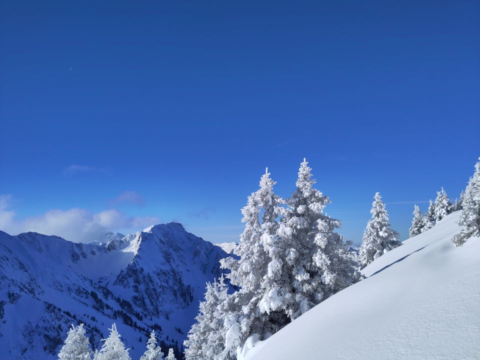 Wunderbare Weihnachtstour mit schönem Pulverschnee und wenig Stein Kontakt, durch den Wind von gestern, viel Triebschnee.
