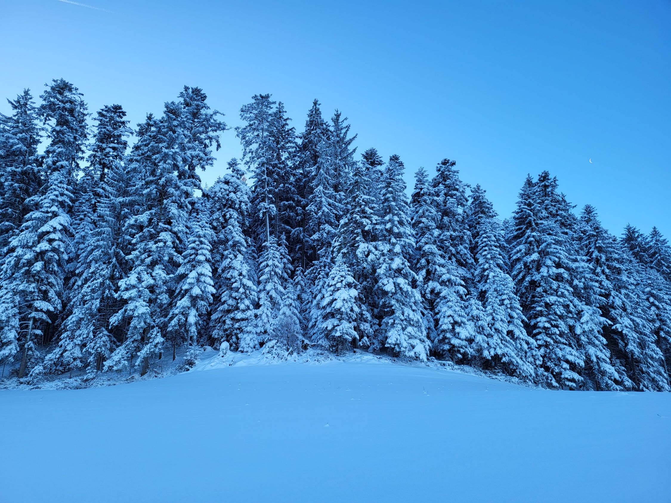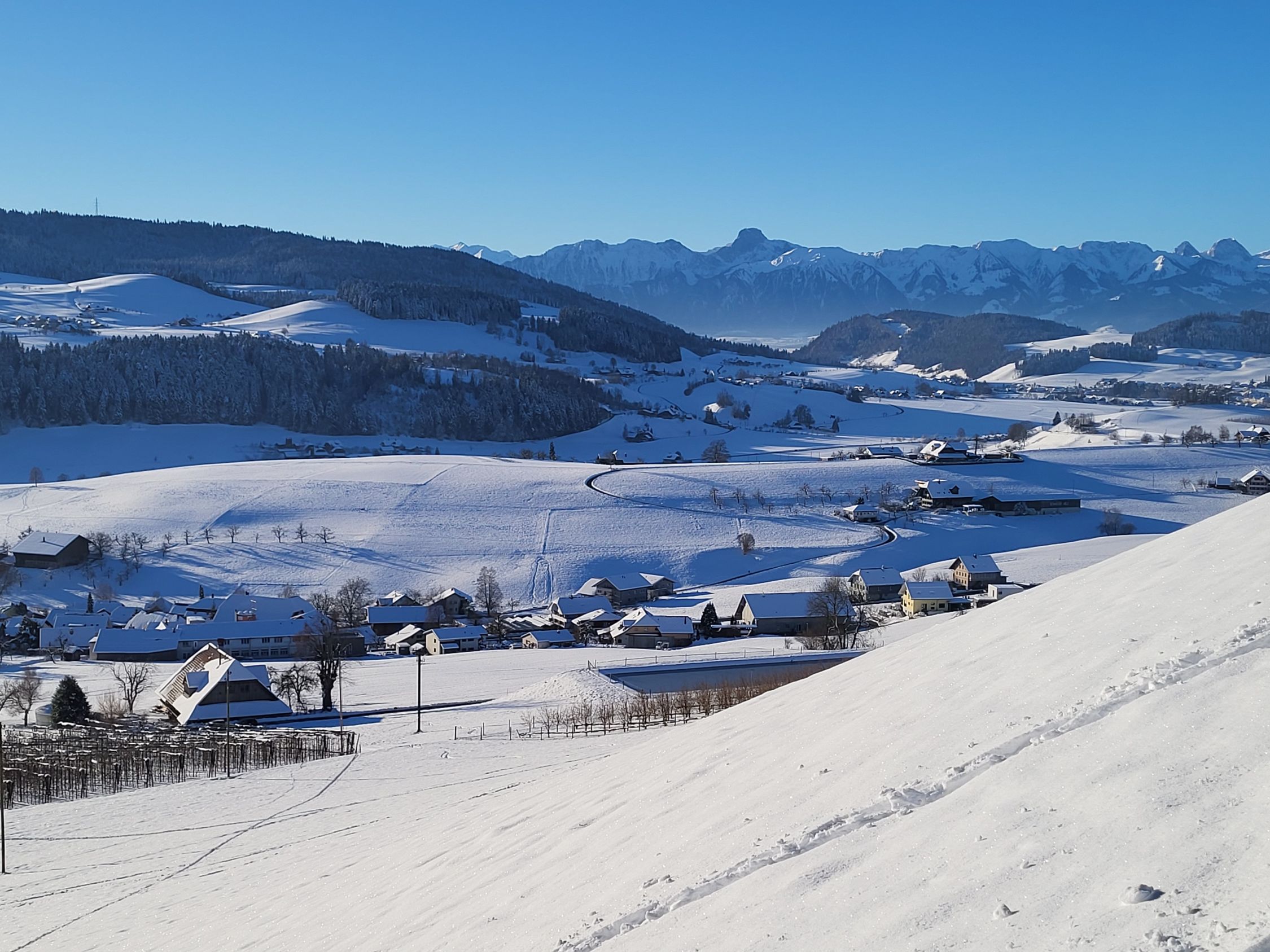 Ein richtiger Gipfel war es heute nicht, aber trotzdem eine schöne Weihnachts-Skitour am Morgen vor dem Familienfest. Es hat genügend Schnee zwischen Biglen und Zäzwil. Schöner Pulverschnee auf der Nordseite, der Südhang ist von der Sonne schon etwas angedeckelt.