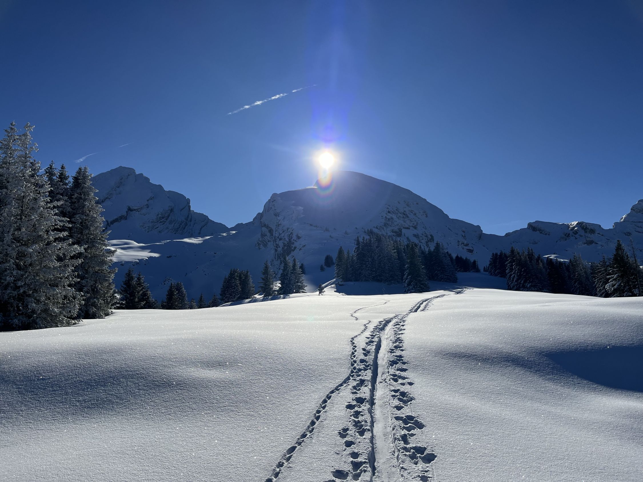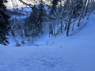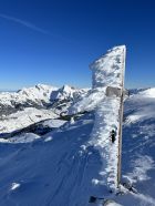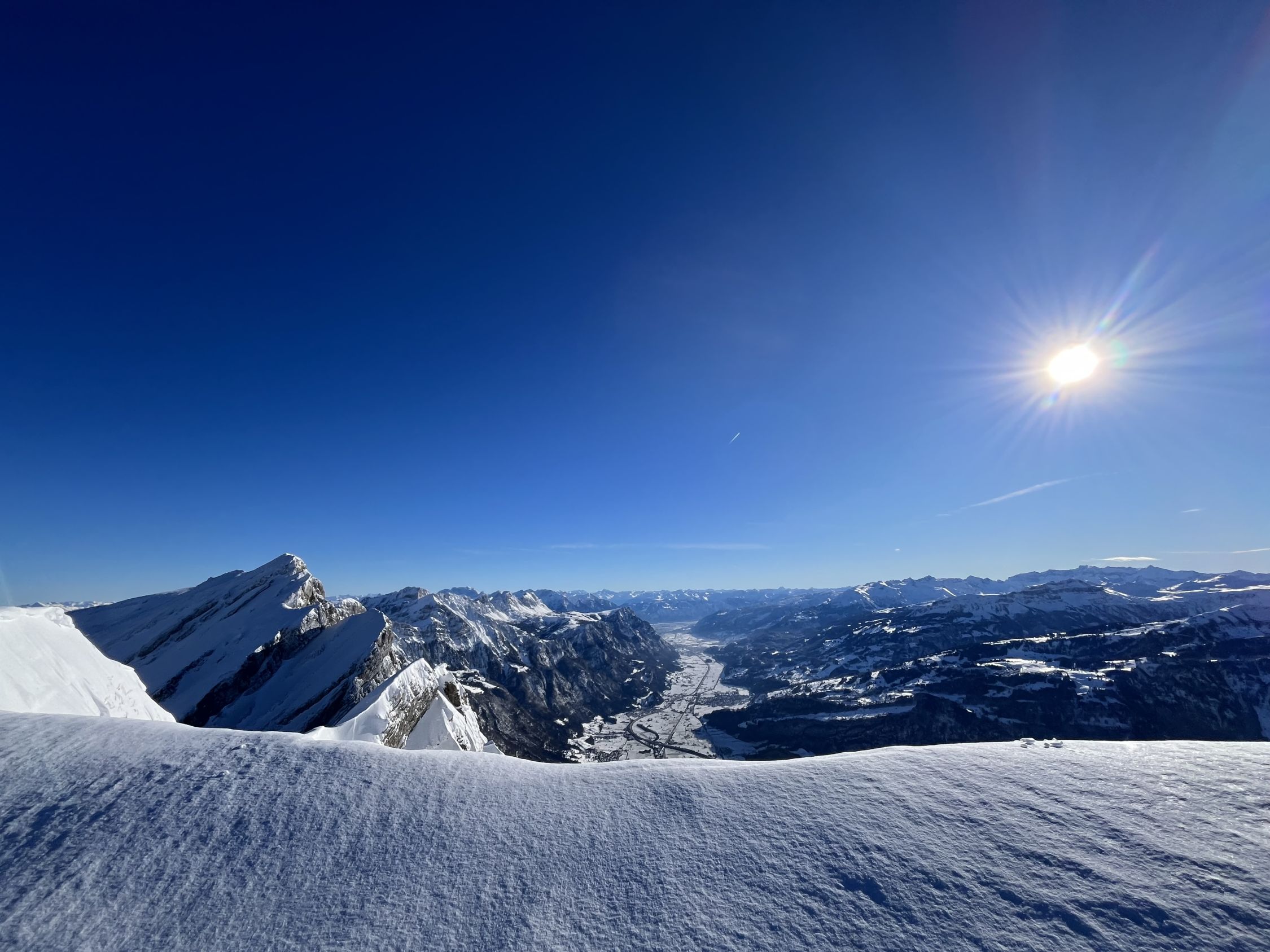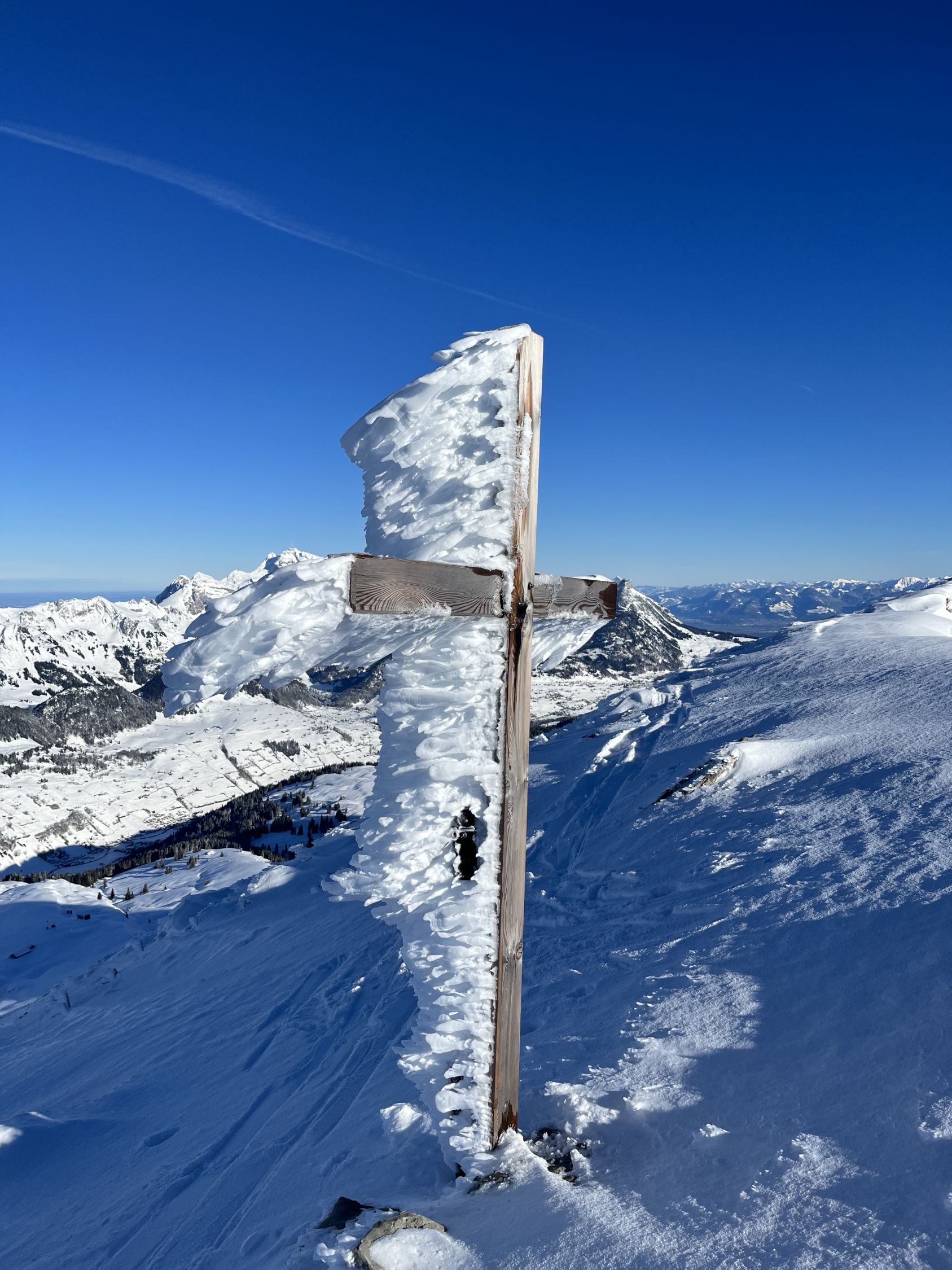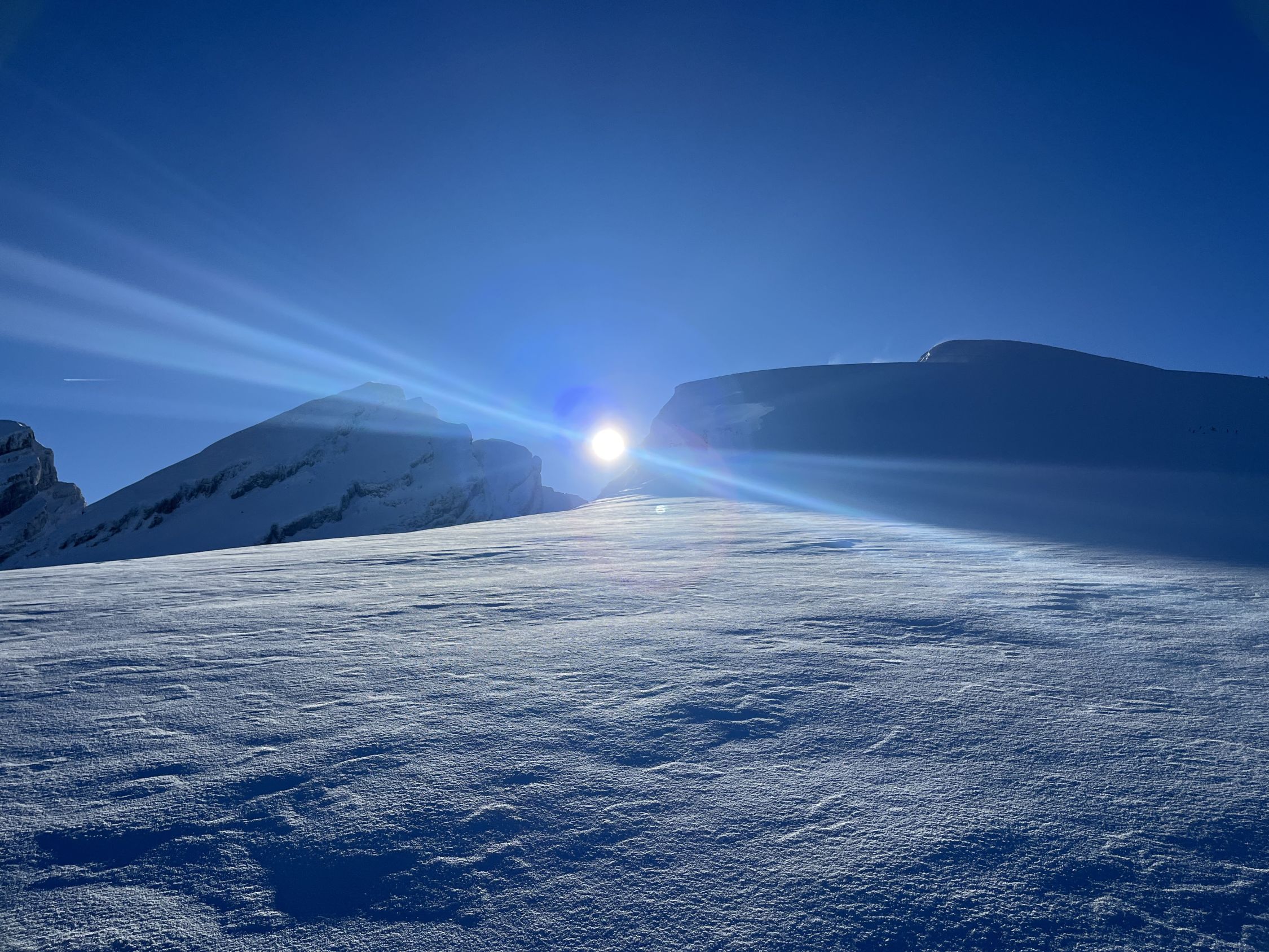 Es war 8:30 als ich bei der Sagi mit - 8 grad losgelaufen bin. Bis drei Eidgenossenrestaurant kurz auf der Loipe. Dann in der schmaler aber gute Spur bis Strichboden. Ab ca 1800m durfte ich dann selber Spuren. Es hat ca 40 cm Windgepressten Powder auf der Flanke, oberen 20hm sind Eisig, mit Board am besten Harscheisen montieren. Kreuz hatte fantastischen Reifaufbau, oben Windstill. Abfahrt trotz einselner Steininseln ohne Steinkontakt. Dank der Kälte Schnnee Top fluffig und sehr lauffreudig was den Boarder in flachen Passagen freut :-)