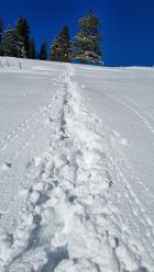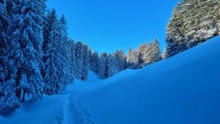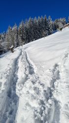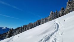 Schon beim Start in Sattel genügend Schnee. Zum Teil nasser Schnee aber meist sehr pulverig. Es hatte nicht viele Leute unterwegs und das Gebiet war noch wenig verspurt.