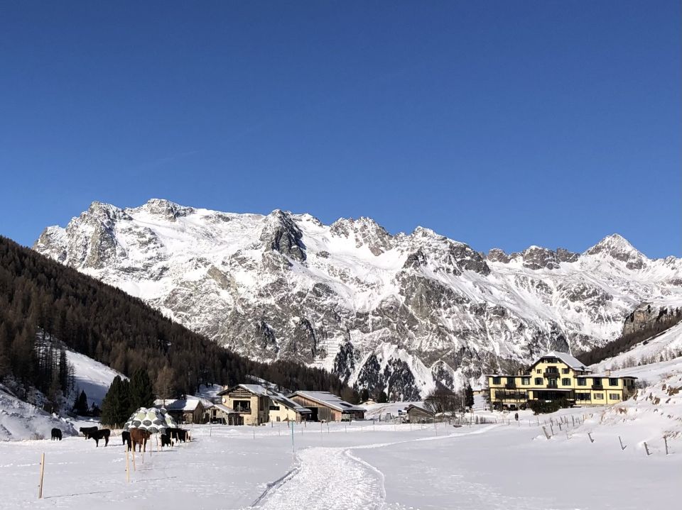 Auf dem Winterwanderweg bis Restaurant Alp Muot Selvas 2070m schön. Loipe nicht präpariert.