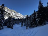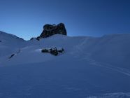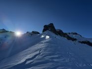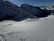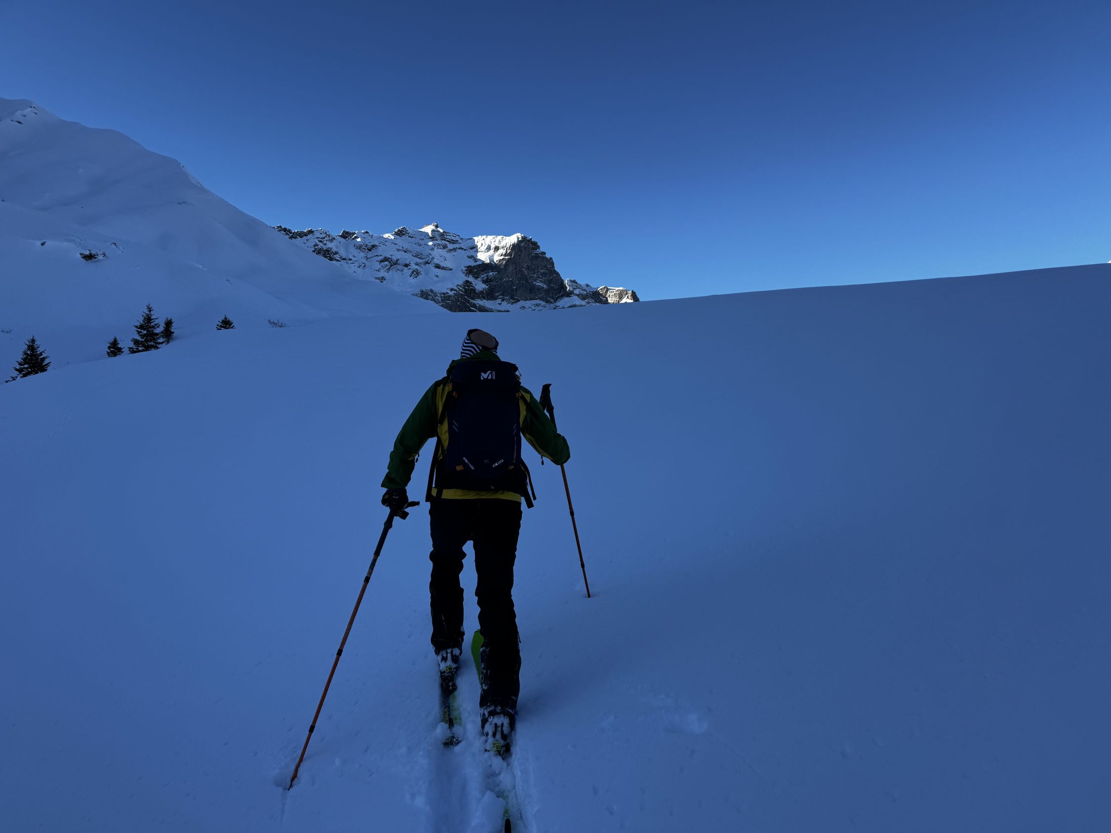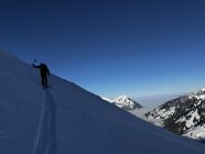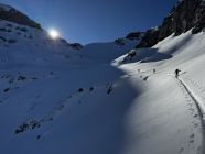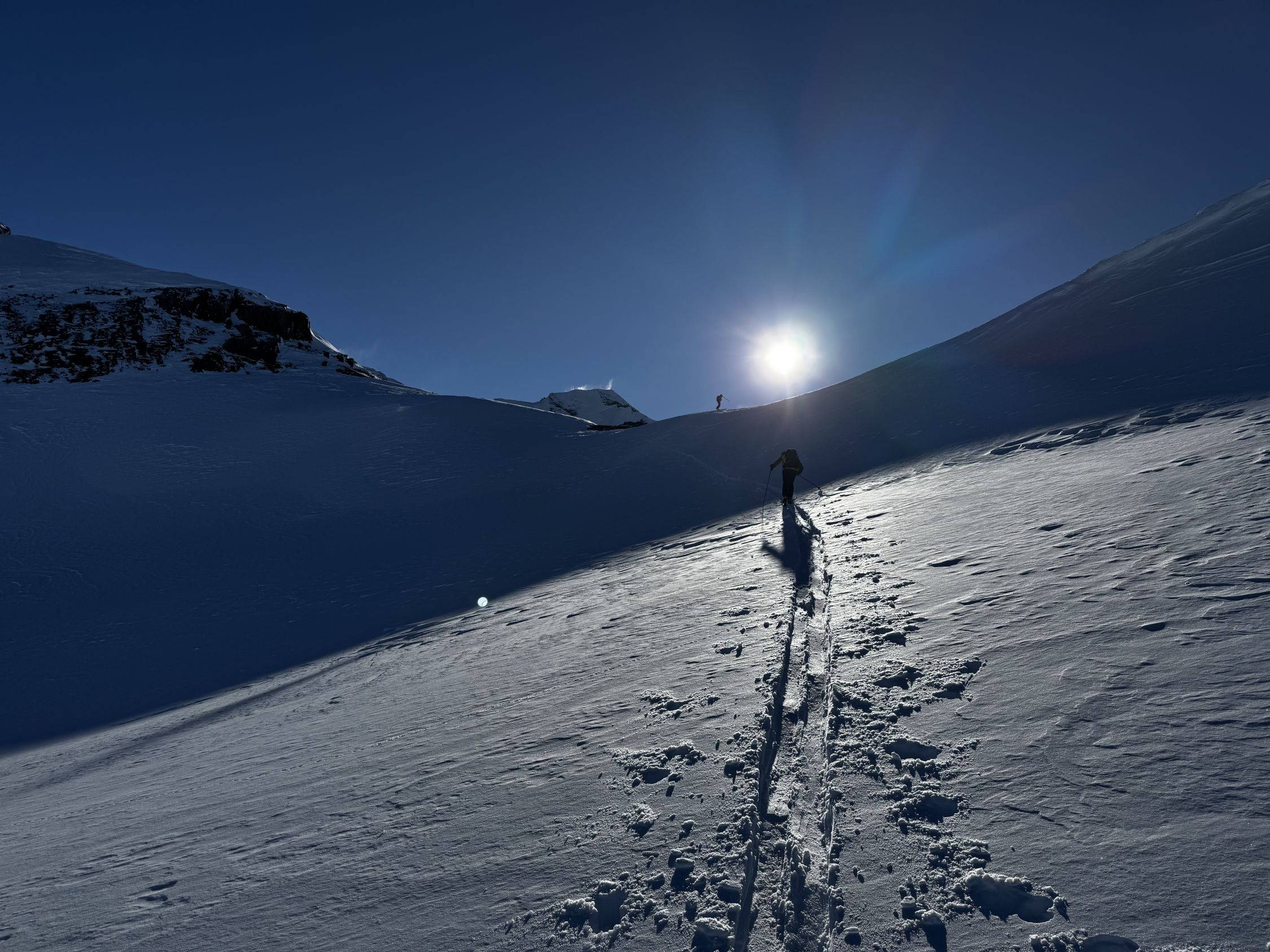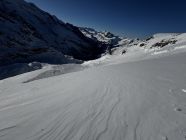 Ab obere Dünde war Spurarbeit angesagt, die Ablösung ab Schafberg kam dann auch gelegen. Aufrgrund der LWS (3-) defensive Routenwahl im Auf- und Abstieg. Der Südhang unter Punkt 2782 ist auf seiner ganzen Breite aufgrund tageszeitlicher Erwärmung abgegangen. Die Aufsstiegsspur führt jedoch einiges über der Anrisskannte zu Punkt 2872.