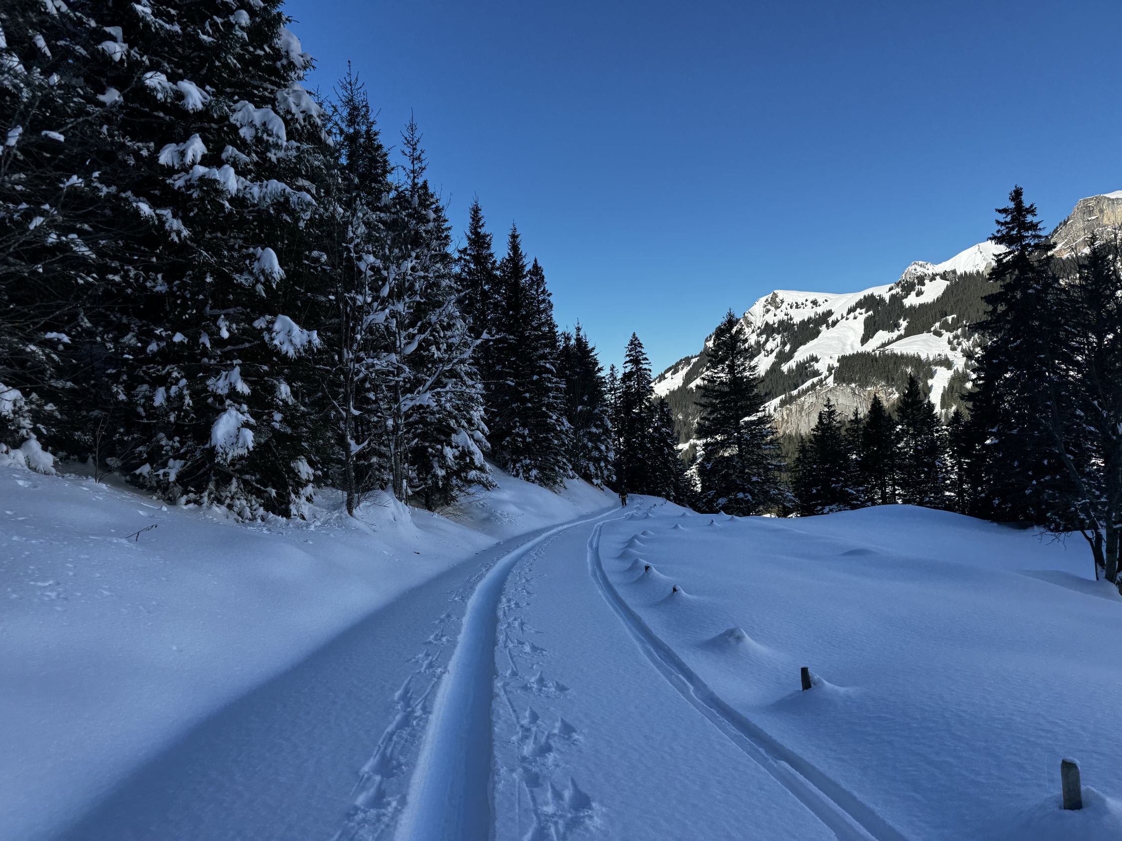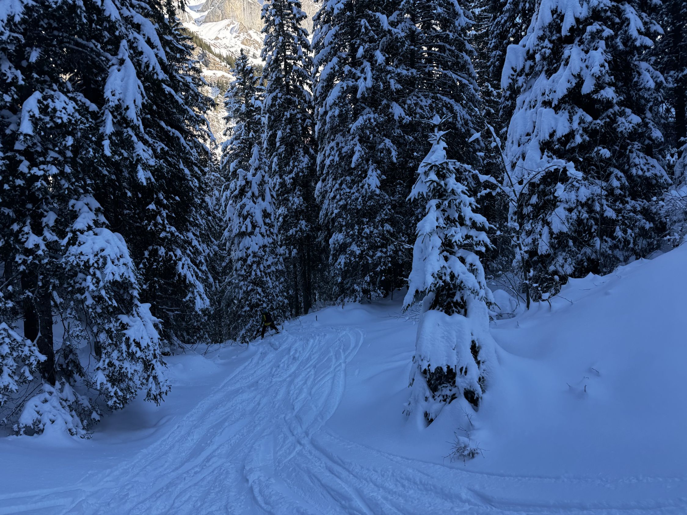 Die Strasse auf die Griesalp ist gut eingeschneit wie das ganze Gebiet.