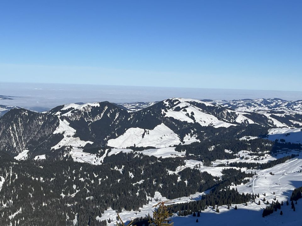 Es war 9:00 als wir am Friedhof hinter der Kirche in Alt St. Johann bei -8° gestartet sind. Es hat eine gute Spur, an den Wiesenmauern hat es knapp Schnee sonst gut, kein Graskontakt. Spur auf die Lütispitze gut, kurz glasig im Nordhang, mit den Ski bis Gipfel. Für Diretissima Abfahrt Süd ab Gipfel hat es etwas zu wenig Schnee. Wir sind daher zurück auf Hinderwis und dann Diretissima. Von der Zeit her besser um 8:00 Starten das man vor 12:00 Abfährt. Da nicht eisig Machbarkeit gut, Schnee geradeso gut, sicher vor 12:00, haben einen Rutsch im Südhang beobachten um kurz nach 12:00