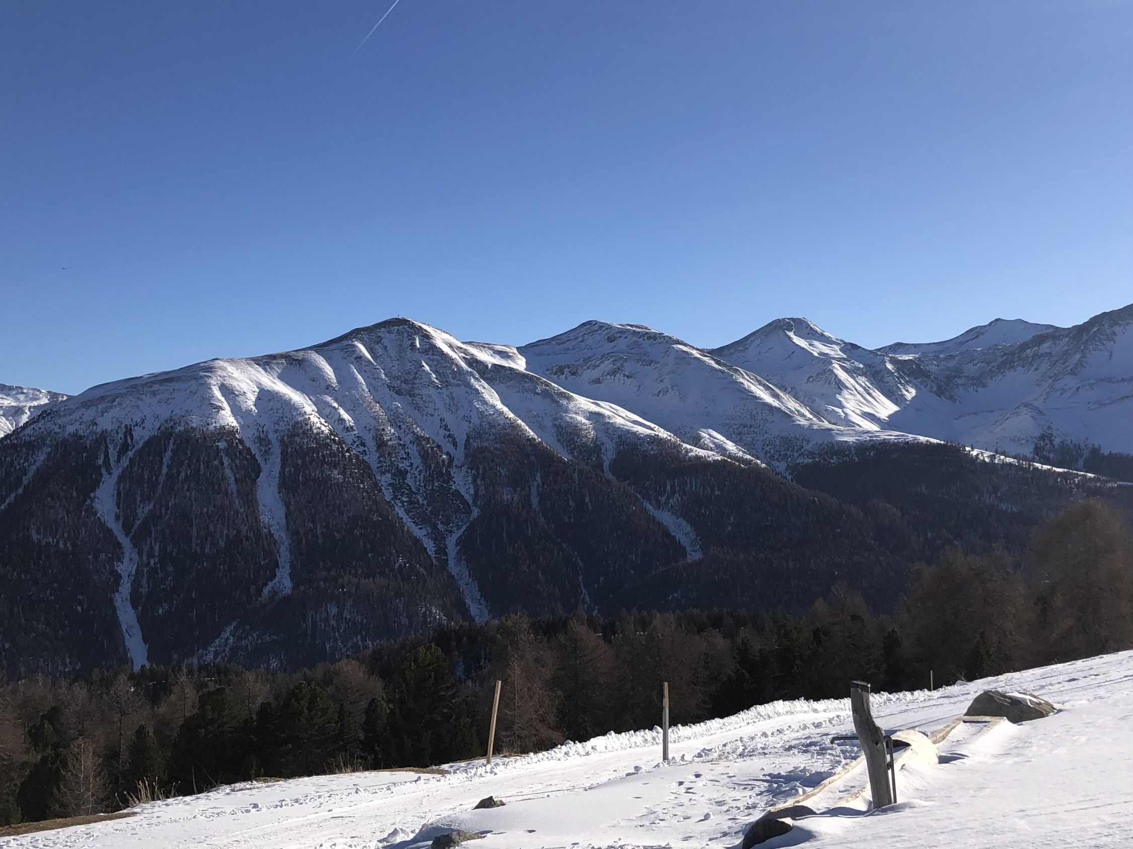 Auch gegenüber Piz Arpiglia viel zu wenig Schnee.