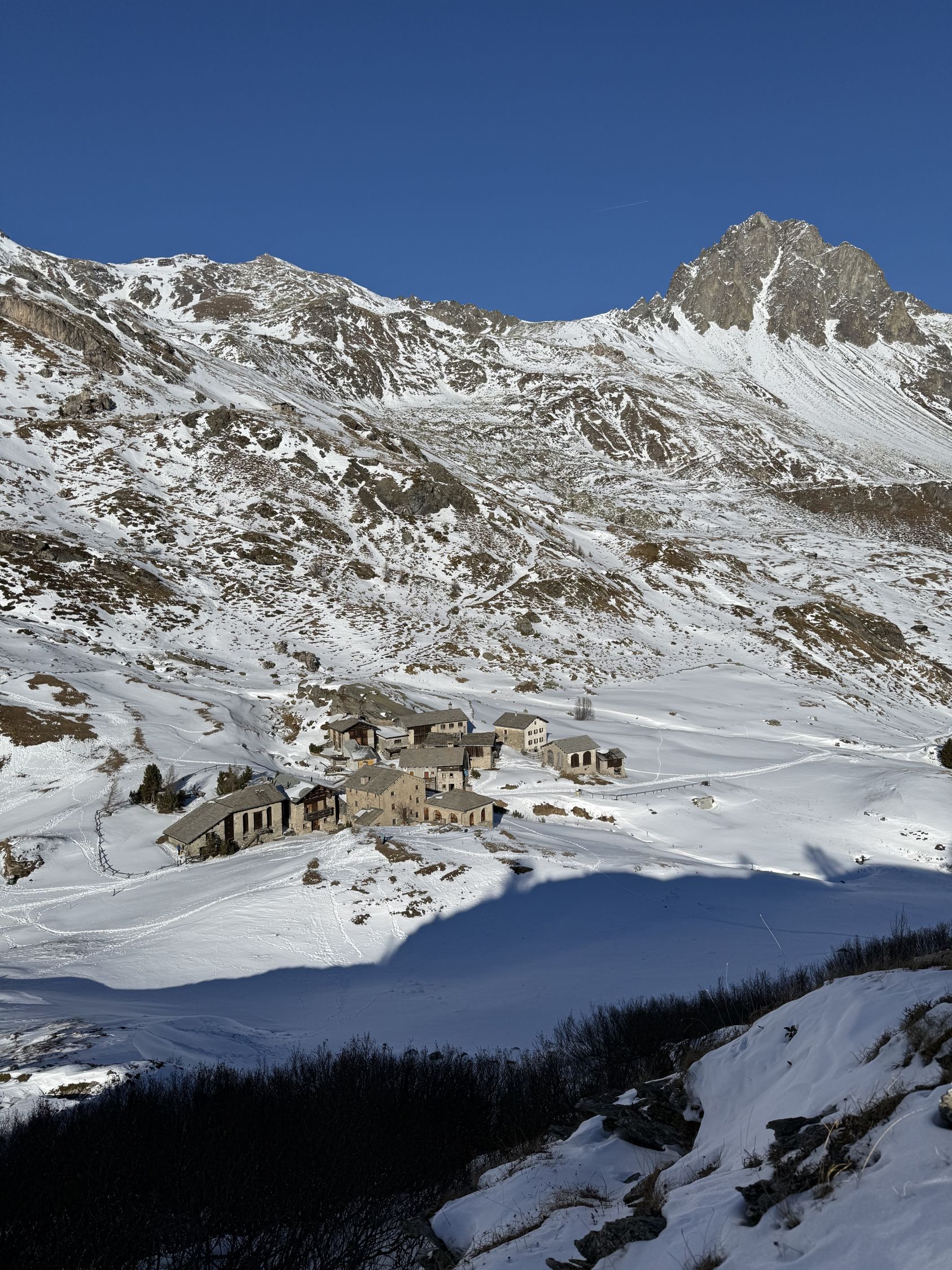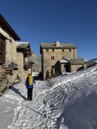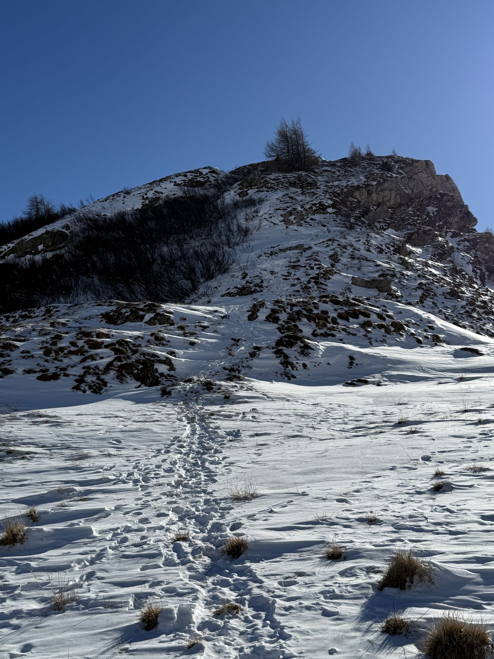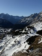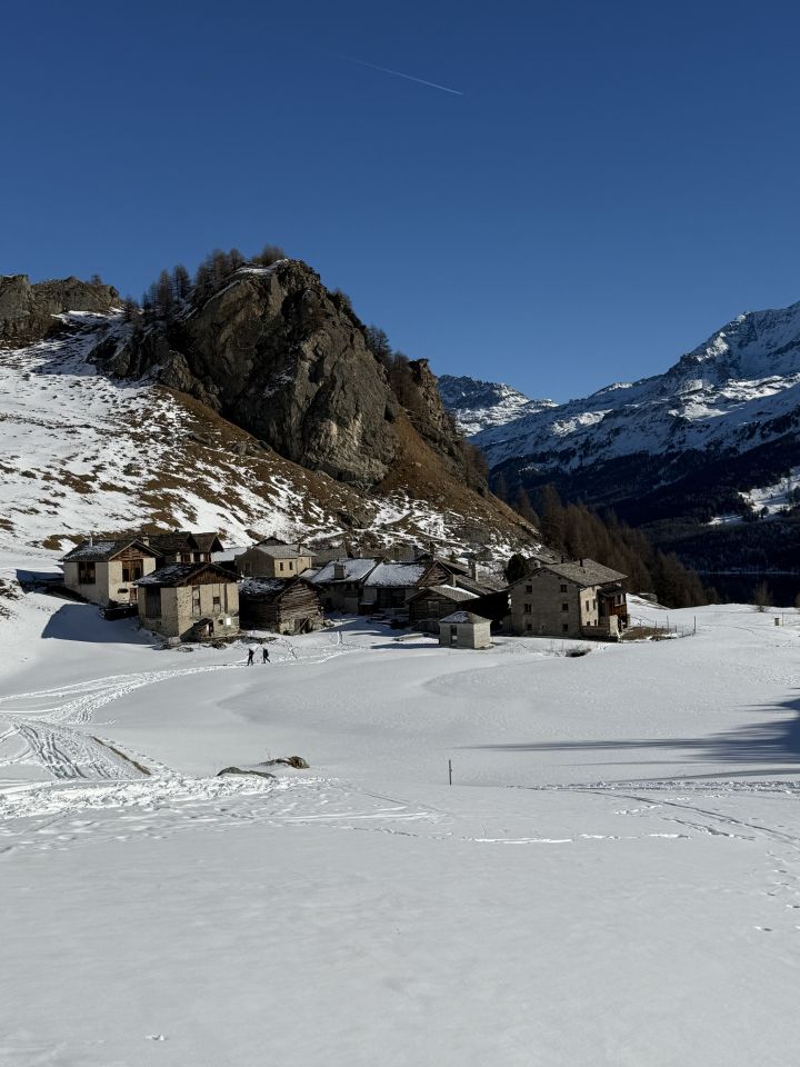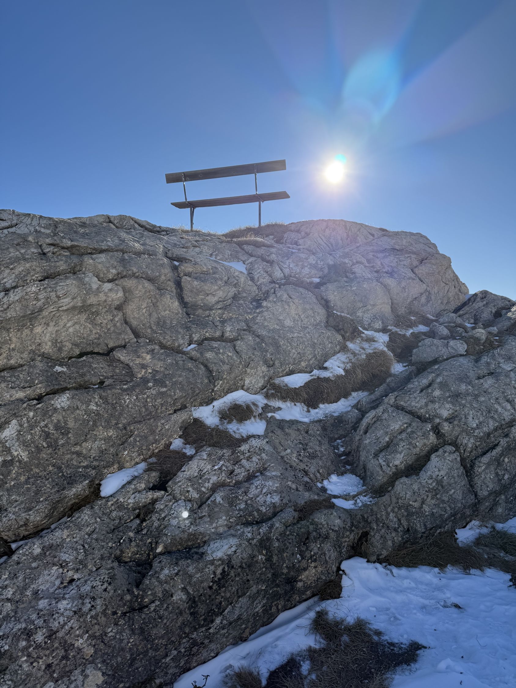Tour ab Plaun da Lej via Grevasalvas auf das spektakuläre Bänklein über dem Silsersee, T4-. Start Plaun da Lej 10 Uhr, minus 3 Grad, windstill. Wir sind auf guter Spur im Schnee via Grevasalvas nach Blaunca gewandert, T3. Nun steil hoch mit Grädel in der Nordflanke zum Aussichtspunkt. Tolle Rundsicht ins Bergell mit Pizzo Badile und Cengalo und auch zum Piz Tremoggia, T4-. Abstieg wie Aufstieg.