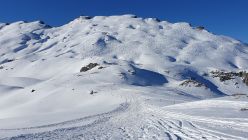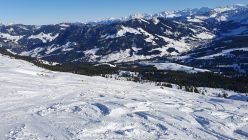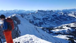 Abfahrt teilweise pistenähnlich, es hat aber noch genug Platz für schöne und gut zu drehende Schwünge im Tiefschnee. Meist pulvrig, in steilen sonnenexponierten Hängen etwas angefeuchtet.