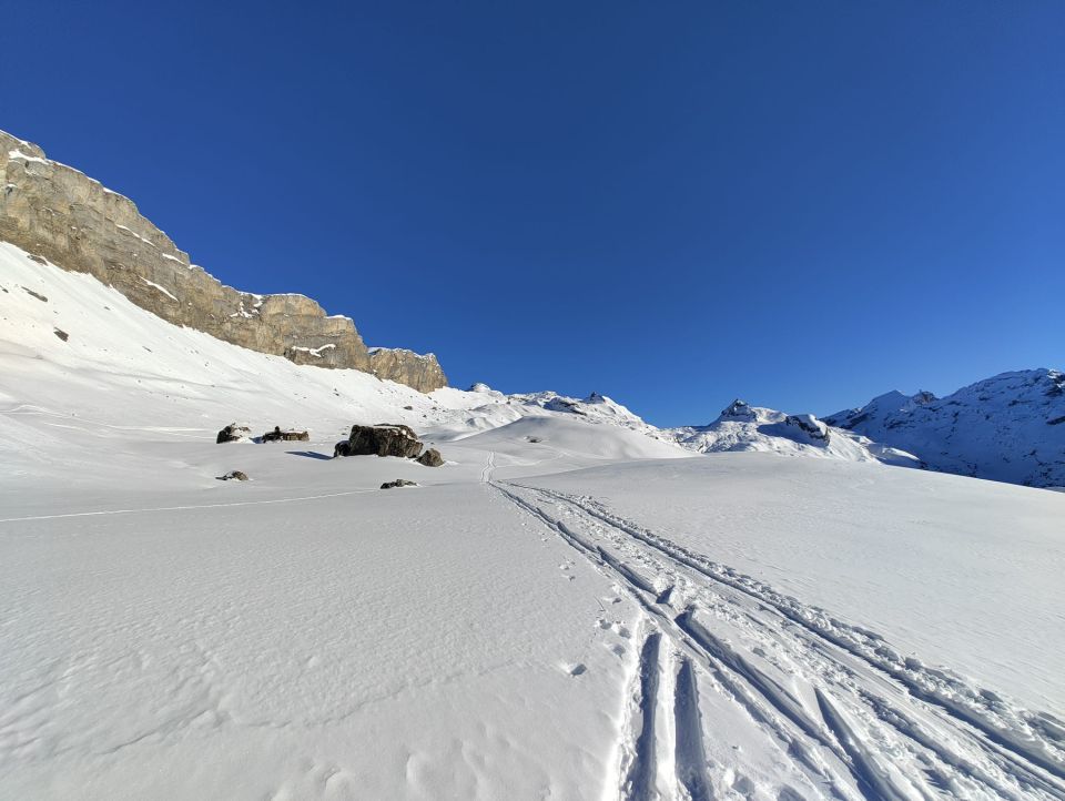 In der Abfahrt regelmässig wieder schöne Pulverabschnitte.