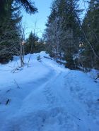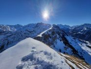 Aufstieg von Ramslauenen zum Punkt 1948 auf ziemlich steiler und rutschiger, eisiger Spur. Deshalb habe ich teilweise neu gespurt. Ab dort problemlos bis zum Skidepot (mehrere Spuren vorhanden). Fussaufstieg zum Gipfel gute Trittspur, nicht eisig.