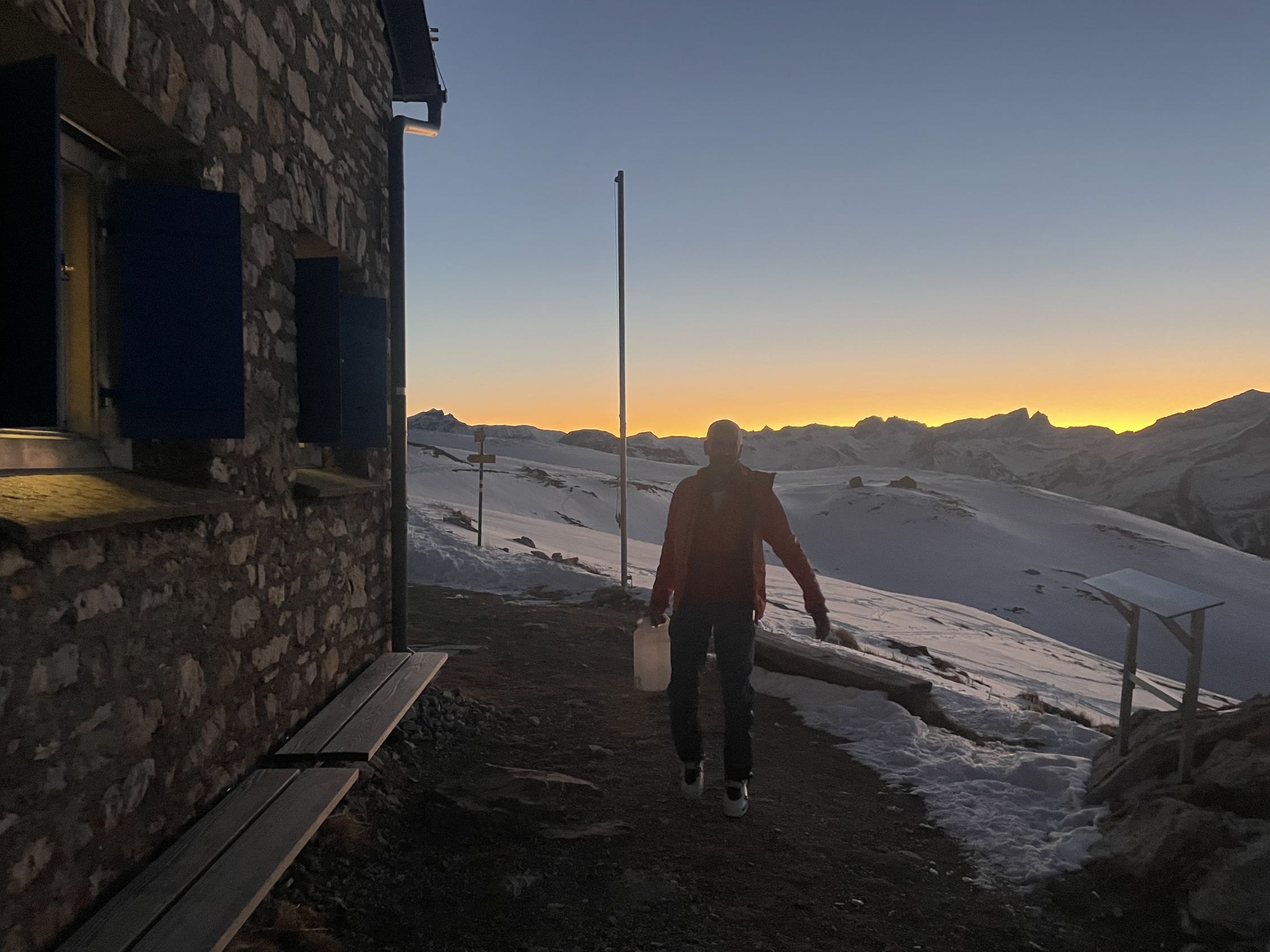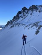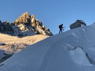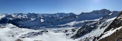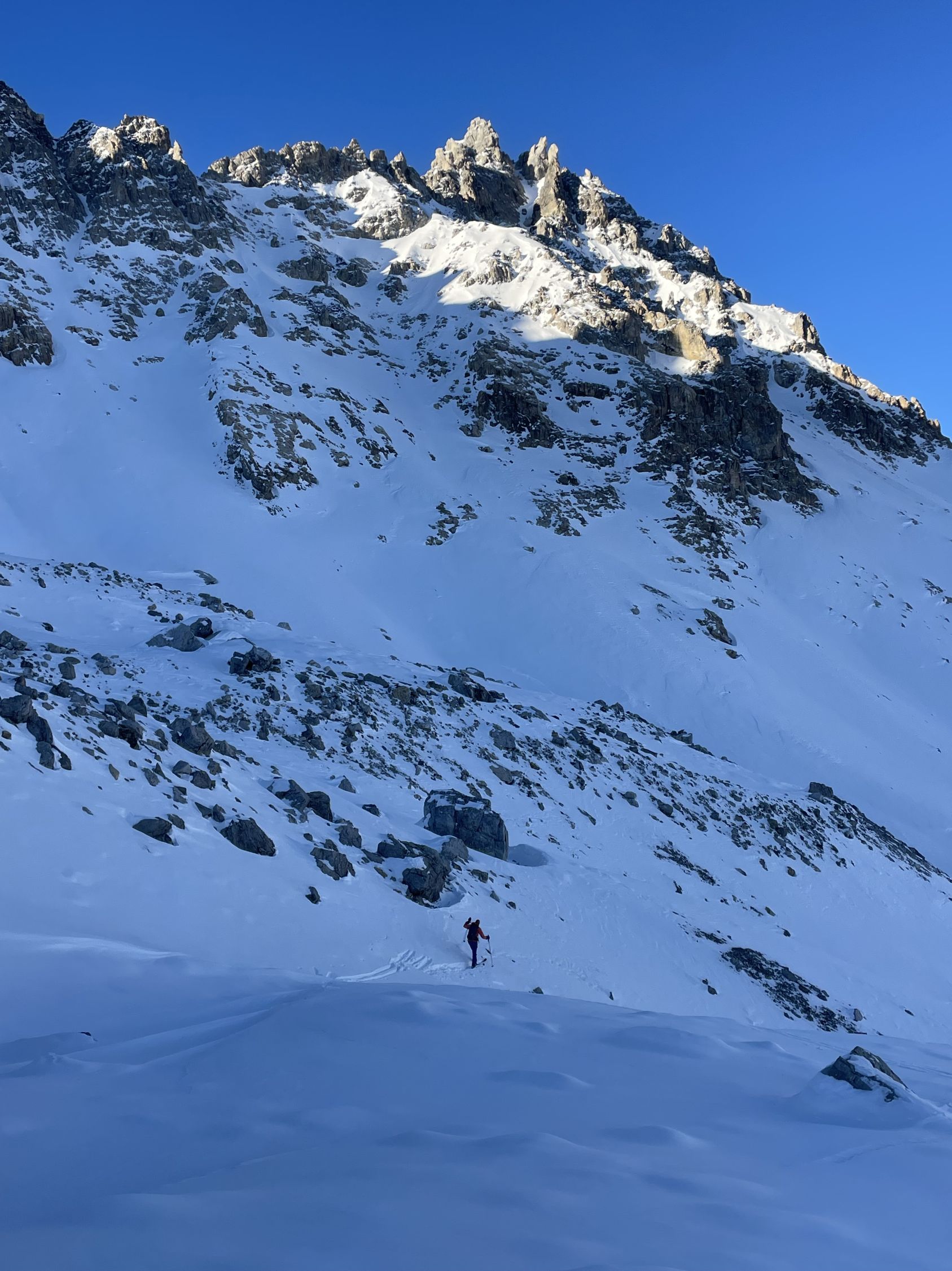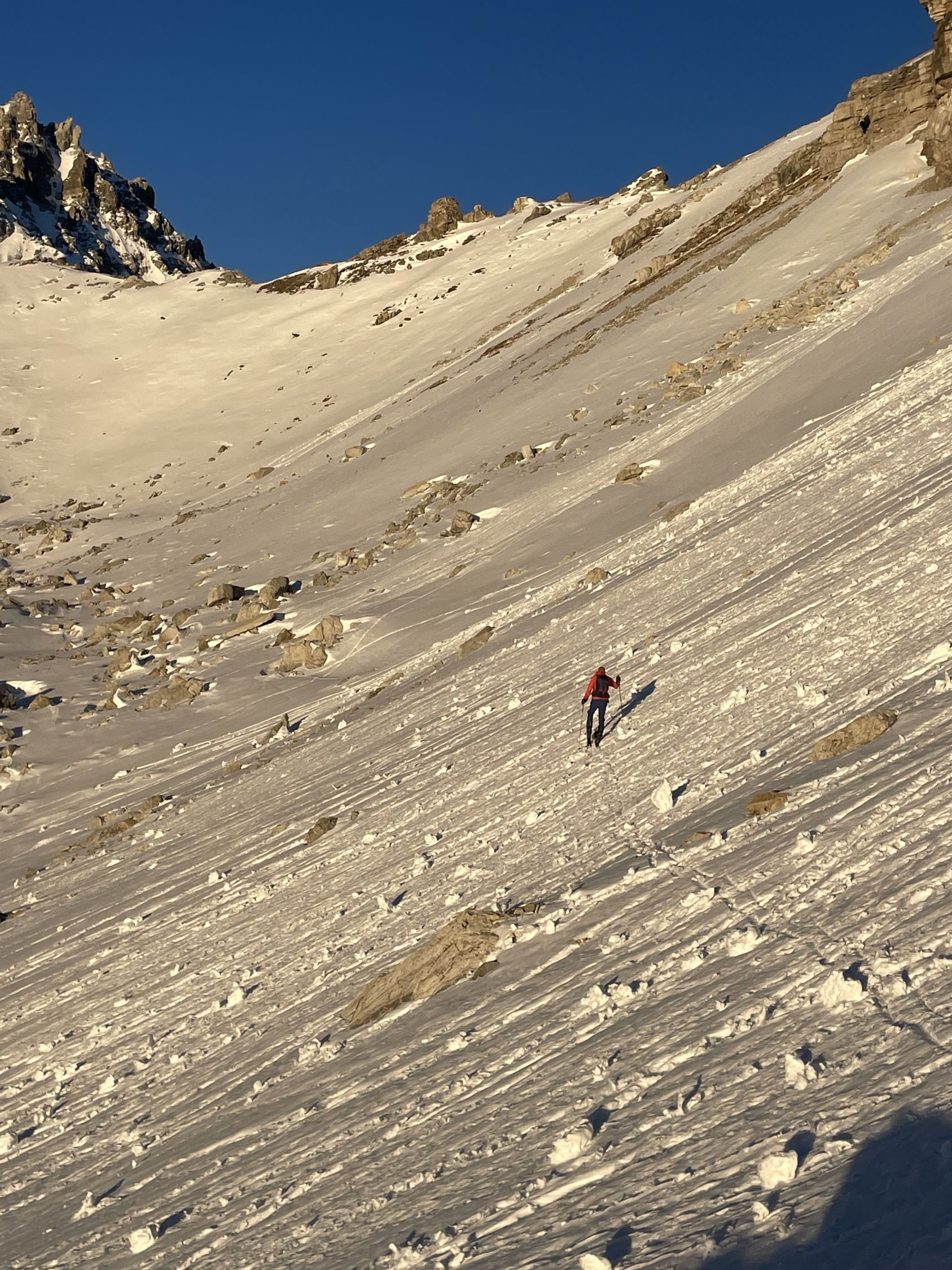Was den Übergang von der Cufercalhütte über die Forcletta digl Pintg anbelangt, ist allerdings ein „machbar“ noch schmeichelhaft. Die Schneelage ist dort dermaßen dürftig, dass fast kein Durchkommen mehr ist. Es schauen keine Felsen aus dem Schnee, sondern ab und an Schnee aus den Felsen ;-)
