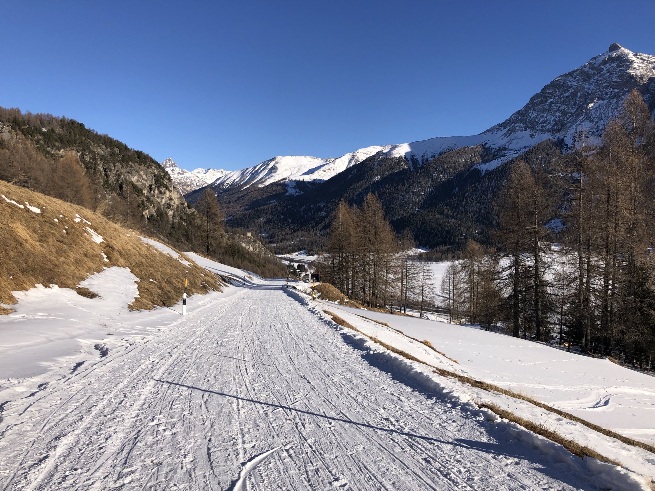 Albulapass Strasse gut für die Abfahrt, sonst zu wenig Schnee