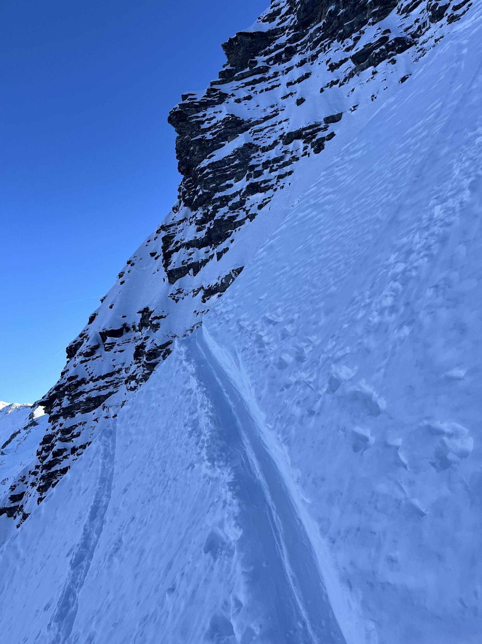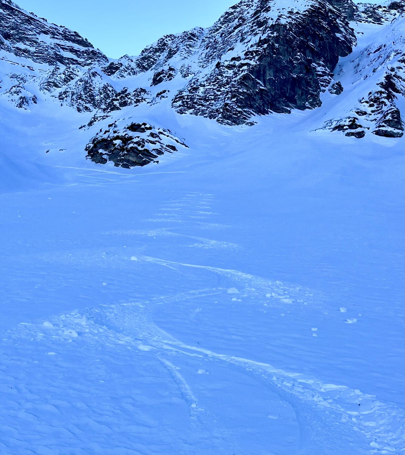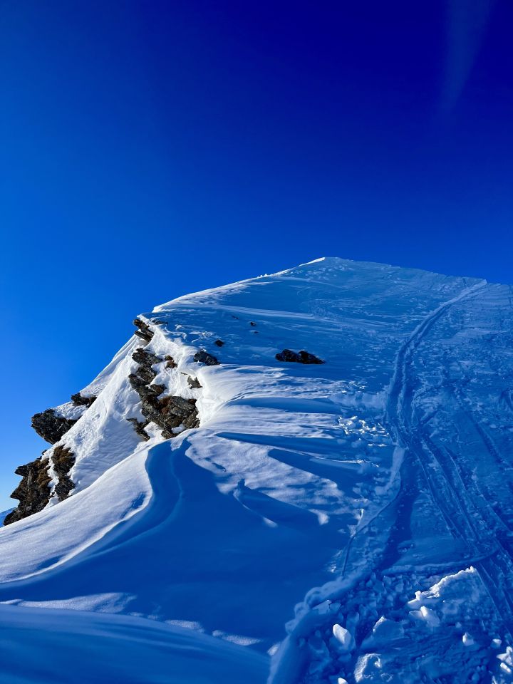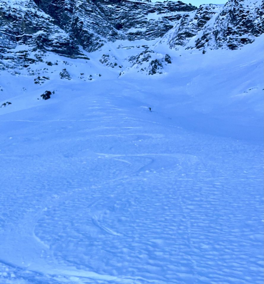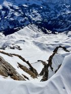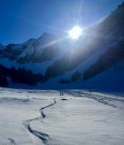 Um 7.30 Uhr bei -5 Grad auf dem Parkplatz bei der Säge gestartet. War mit Emanuel alleine unterwegs. Im hinterste Chirel haben wir das rechte Coulvar beim Wysse Schopf für den Aufstieg genommen. Es hat guten Trittschnee. Steigeisen und Pickel sind hilfreich, aber nicht notwendig. Oben auf dem Schopf hat es eine gute Aufstiegspur bis zum Gipfel. Harscheisen sind nicht notwendig, aber hilfreich, weil zwischendurch die Spur vom Wind verweht ist. Abfahrt ist bombastisch, bei schönstem Pulverschnee von oben bis unten. Es hat noch Platz für Spuren. Beim Abfahren besser das steile Coulvar links nehmen. Es hat dort genügend Schnee drin. Es war eine Traumhafte Tour.