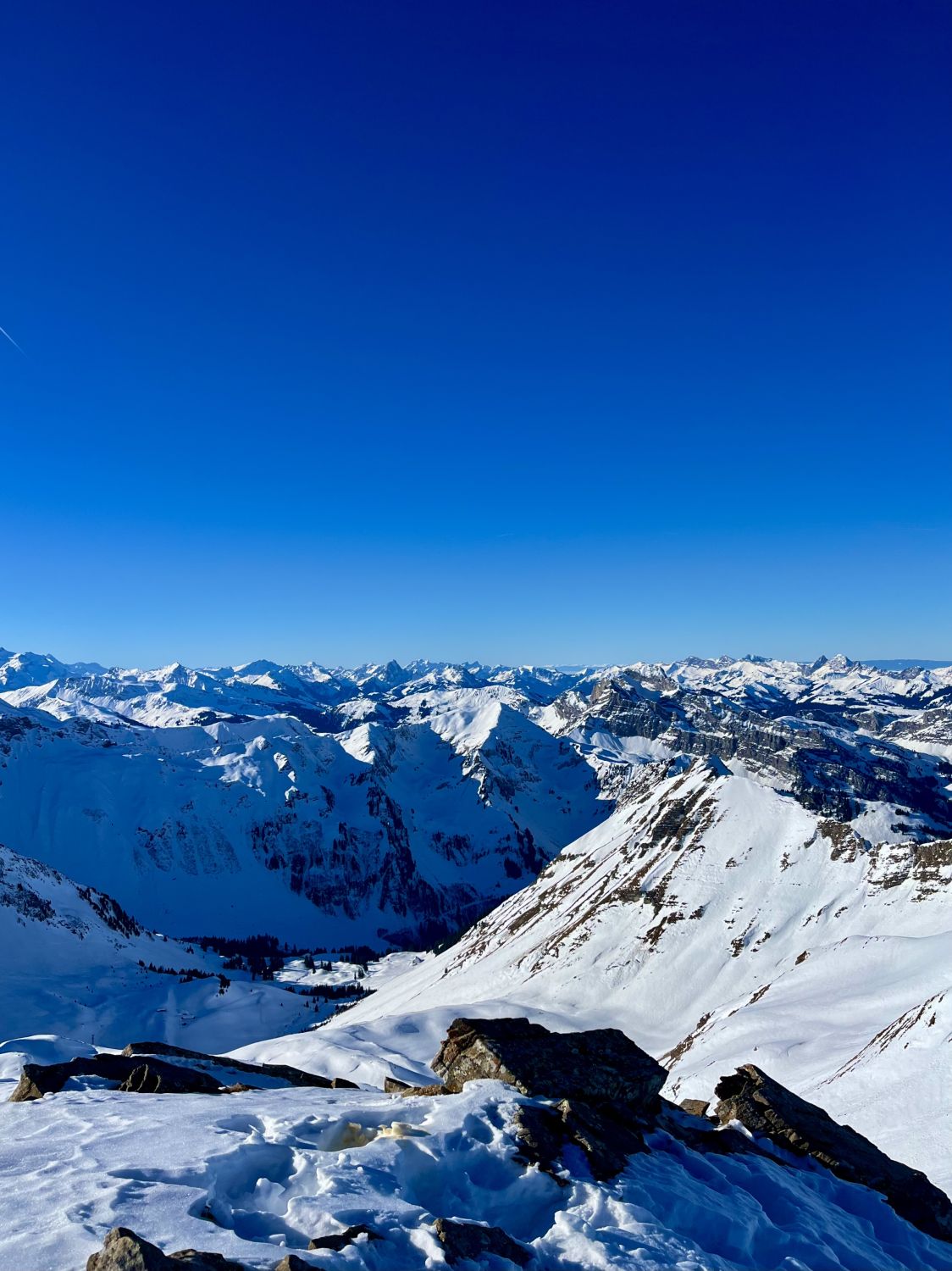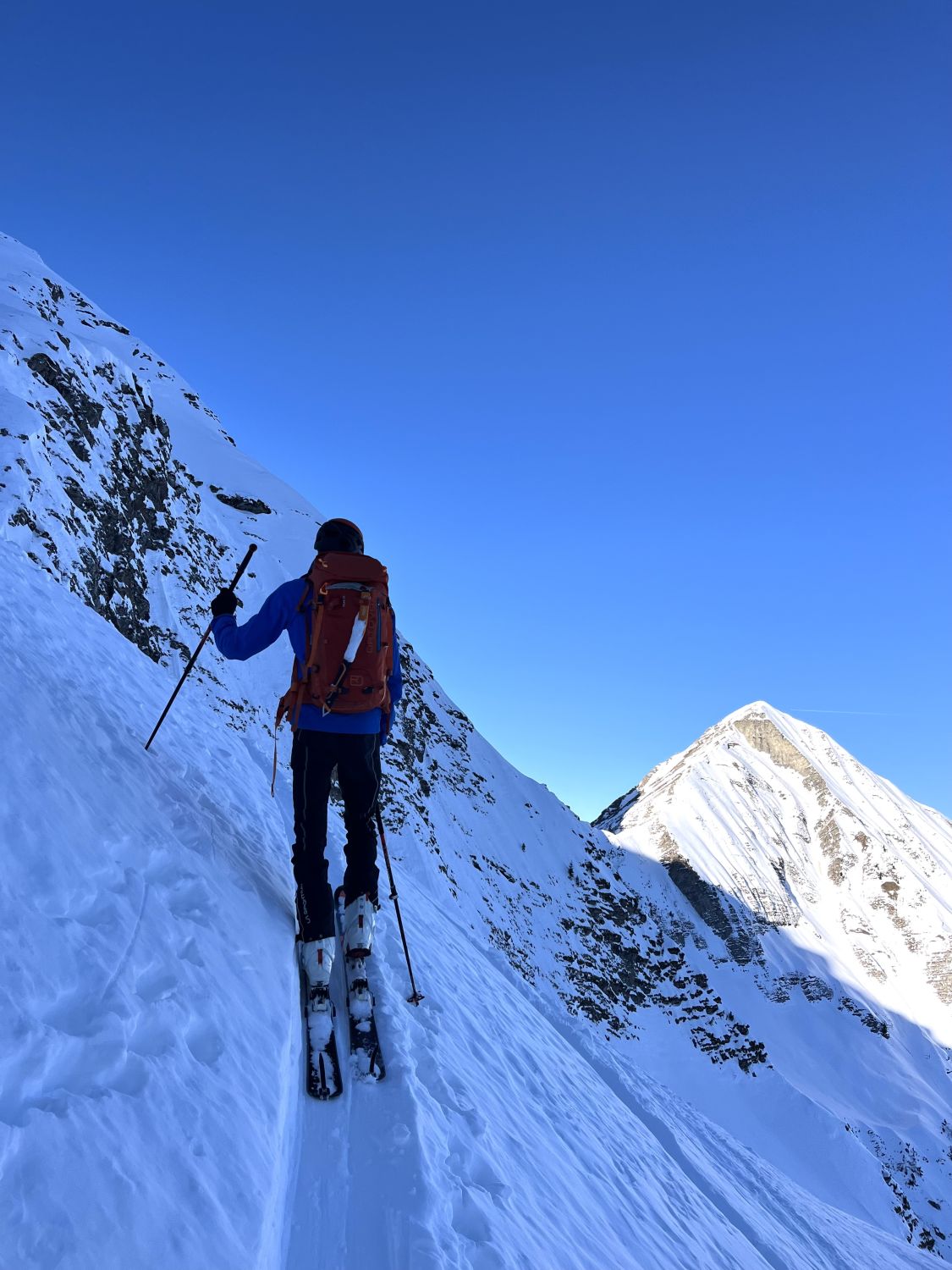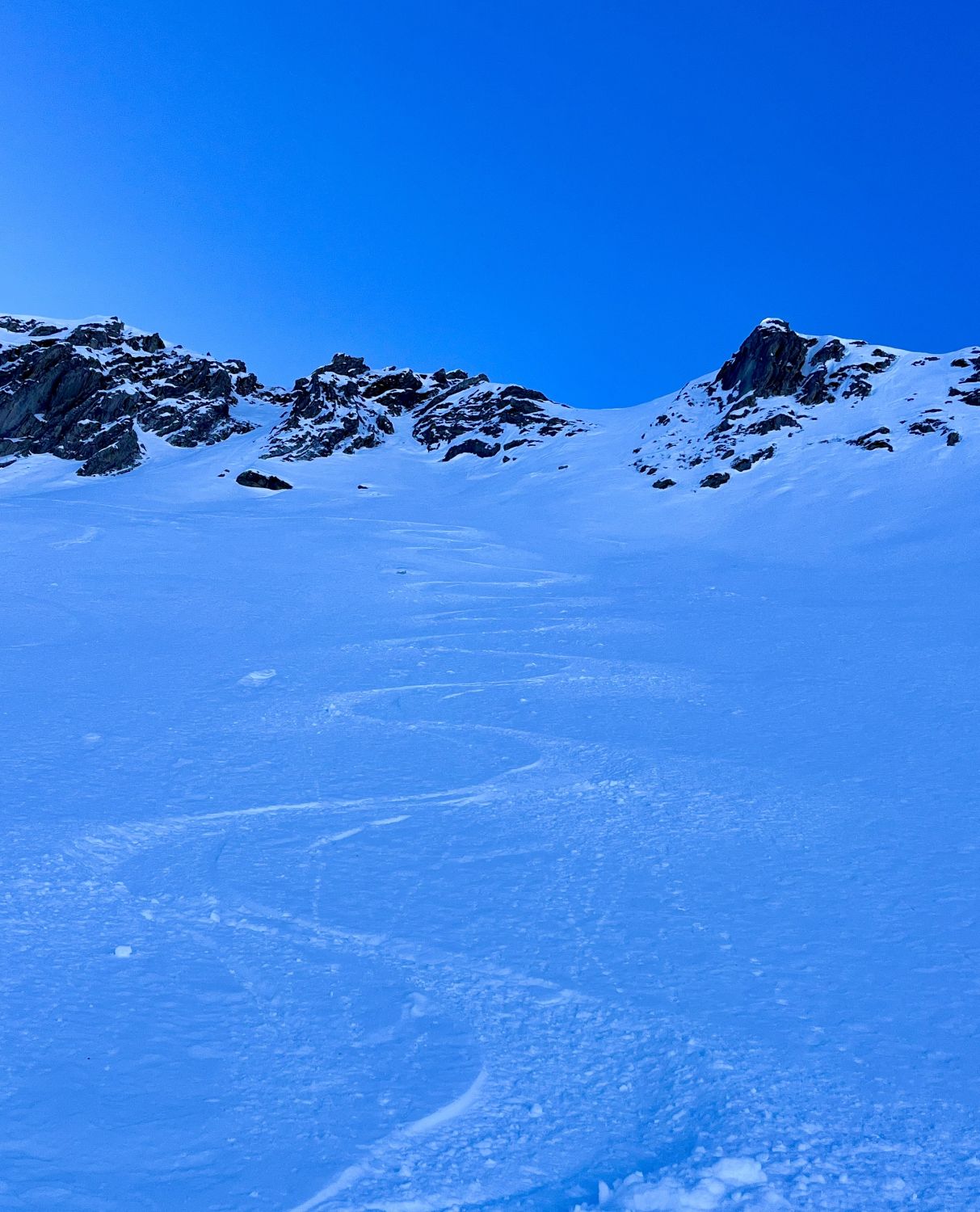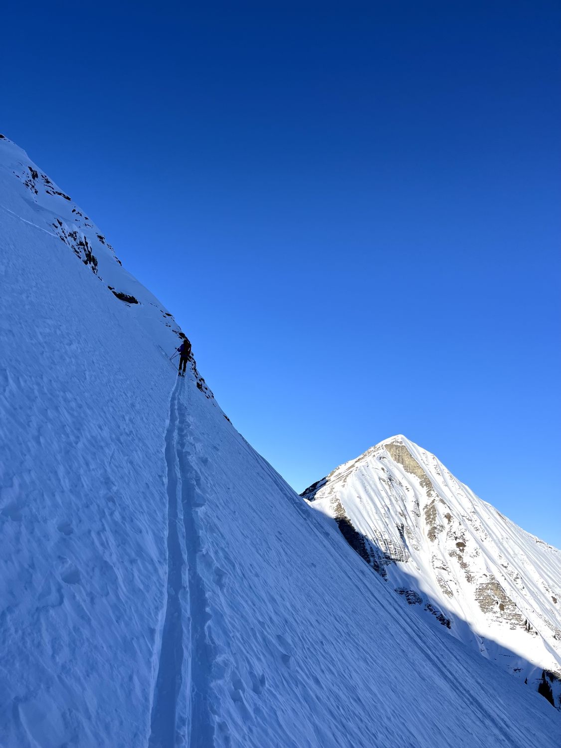 Um 7.30 Uhr bei -5 Grad auf dem Parkplatz bei der Säge gestartet. War mit Emanuel alleine unterwegs. Im hinterste Chirel haben wir das rechte Coulvar beim Wysse Schopf für den Aufstieg genommen. Es hat guten Trittschnee. Steigeisen und Pickel sind hilfreich, aber nicht notwendig. Oben auf dem Schopf hat es eine gute Aufstiegspur bis zum Gipfel. Harscheisen sind nicht notwendig, aber hilfreich, weil zwischendurch die Spur vom Wind verweht ist. Abfahrt ist bombastisch, bei schönstem Pulverschnee von oben bis unten. Es hat noch Platz für Spuren. Beim Abfahren besser das steile Coulvar links nehmen. Es hat dort genügend Schnee drin. Es war eine Traumhafte Tour.