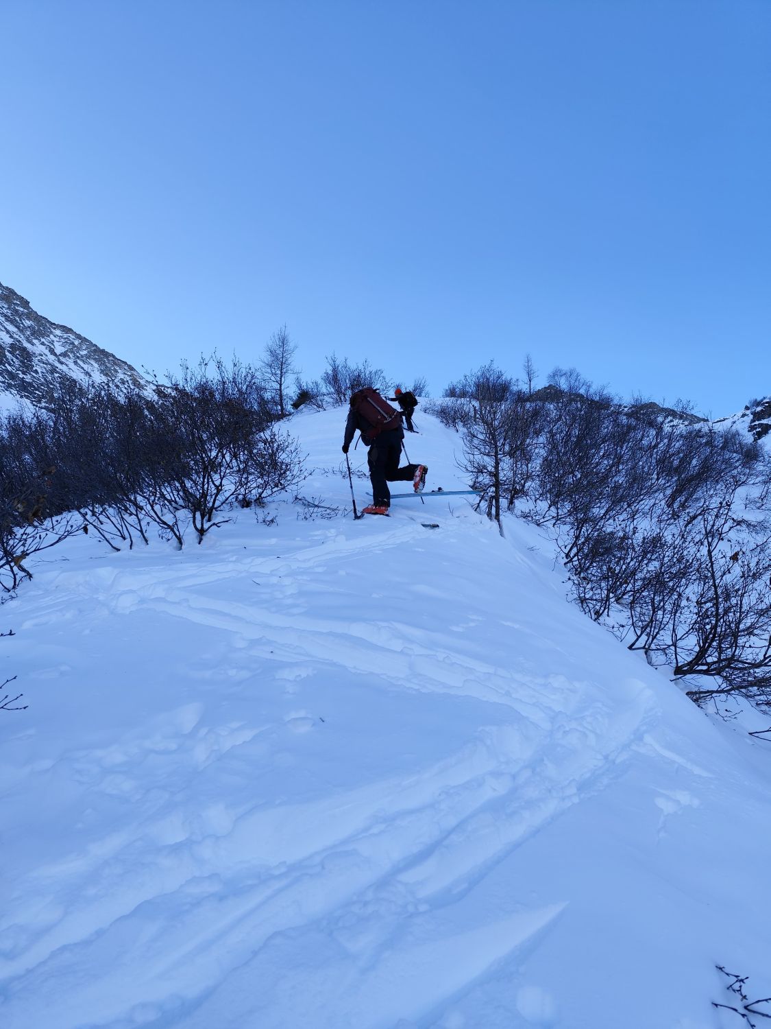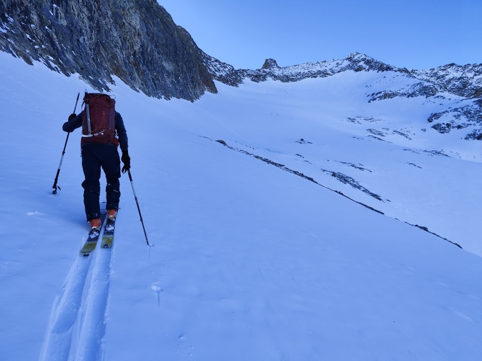 Oben noch super Schnee. Unten etwas schwer bis eisig im Wald. Die obere Mulde lohnt sich sehr, sowie die Gipfelkraxlerei (Steigeisen/Pickel notwendig!). Noch reichlich Platz für neue Spuren (heute 5-7 Leute am Tourenziel). Aufstieg über den Kartigel Absatz nicht ganz unkompliziert, zwei unterschiedliche Spuren wählbar. Enjoy! :) Skitour Exped Tribe
