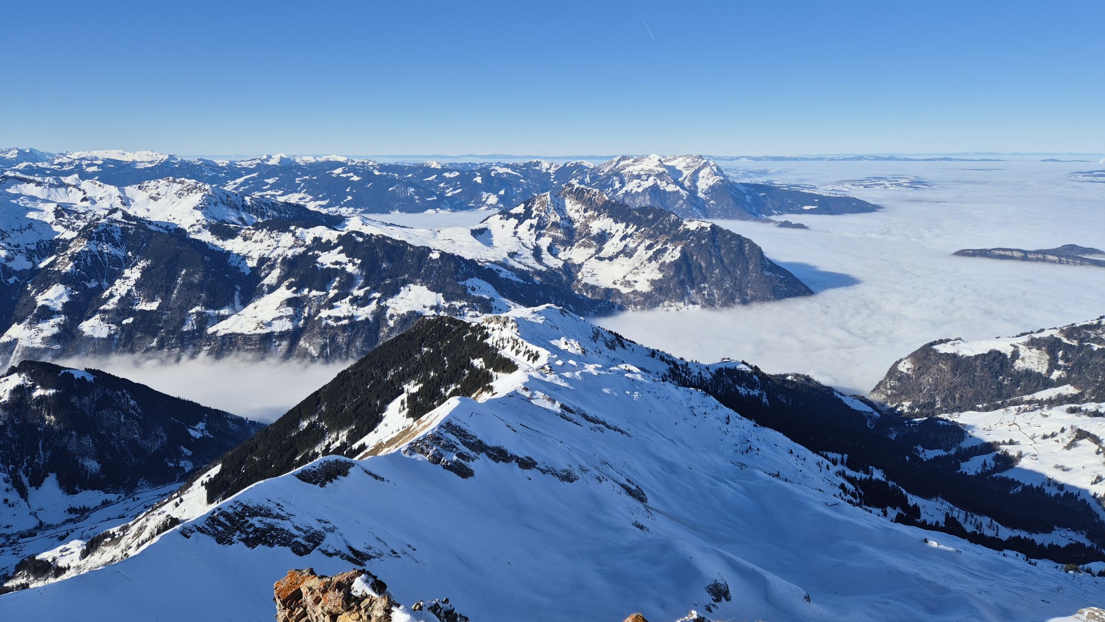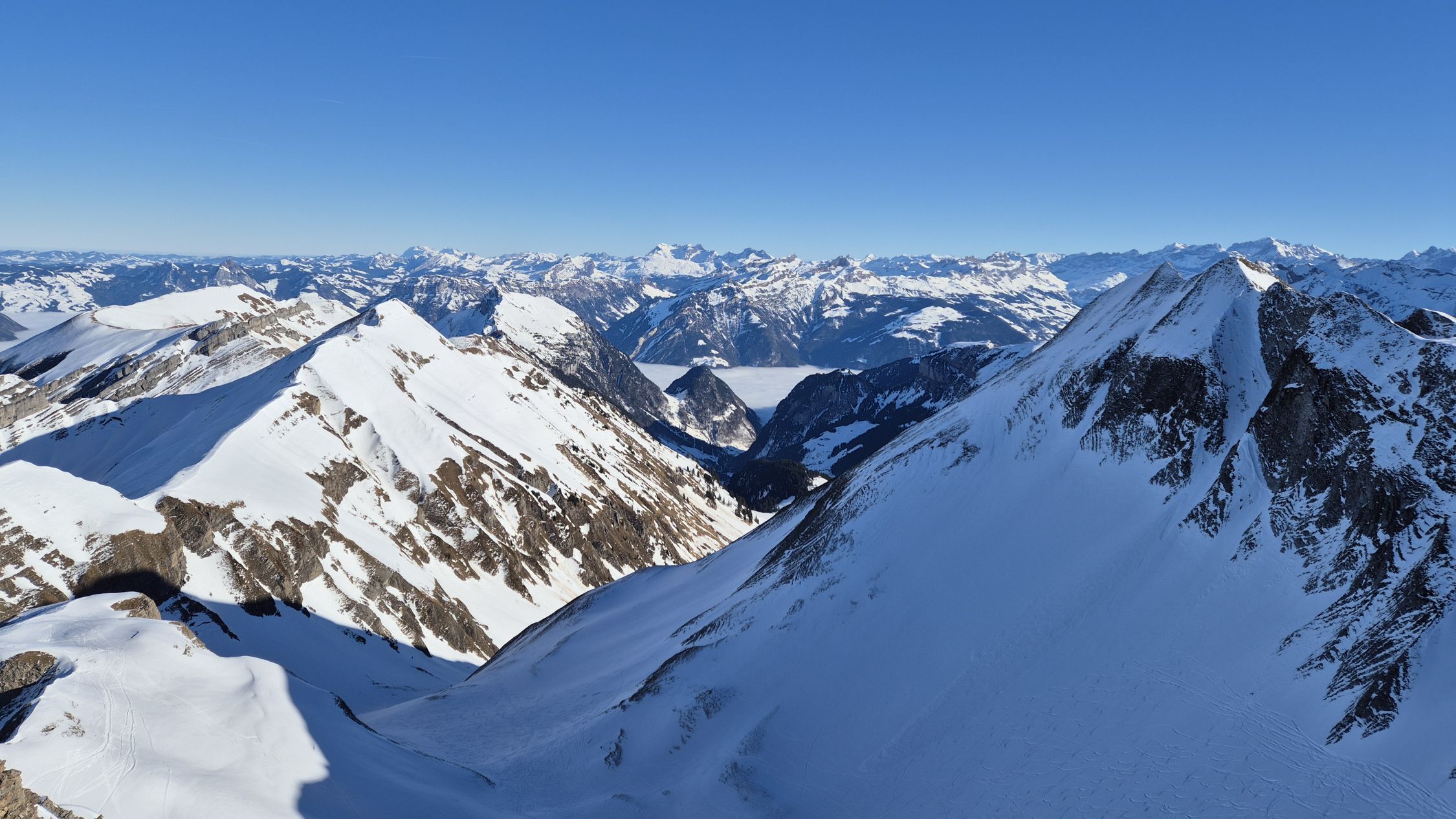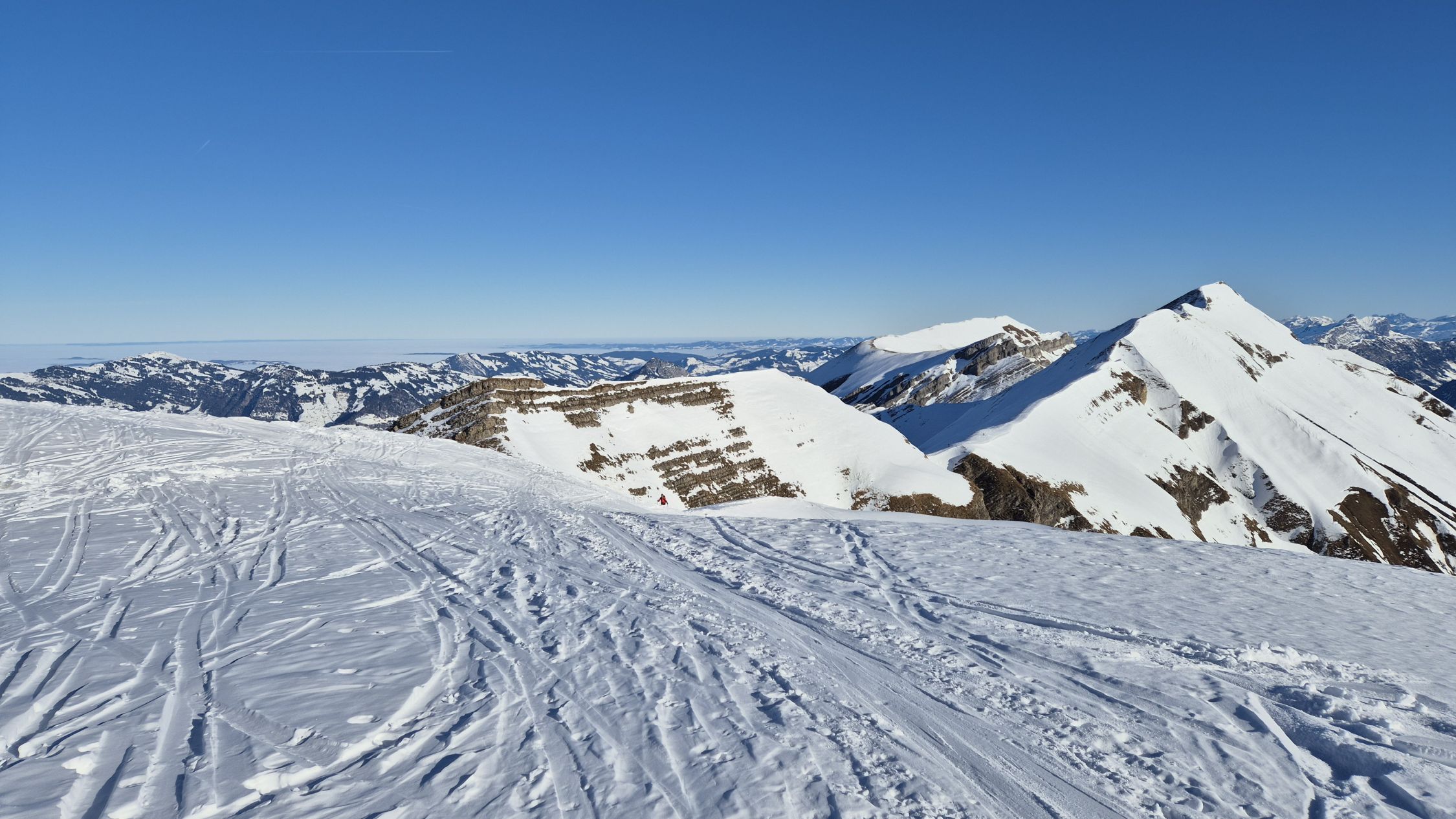 Auf guter Spur zum Skidepot und zu Fuss in gutem Trittschnee auf den Gipfel. Ab Niederrickenbach durchgehend Schnee.