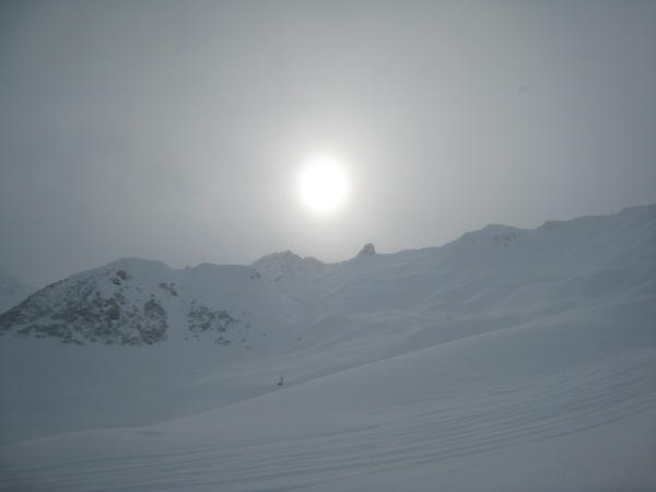 ca. 15 Neuschnee, der kaum verfrachtet wurde. Damit insgesamt ca. 30cm Pulver auf einer mehrheitlich stabilen Unterlage. Schnee aus der vergangenen Woche ist stärker verfrachtet worden. Tw. mittelgrosse Triebschneeansammlungen, die nun durch den frischen Neuschnee eher schlecht erkennbar sind.